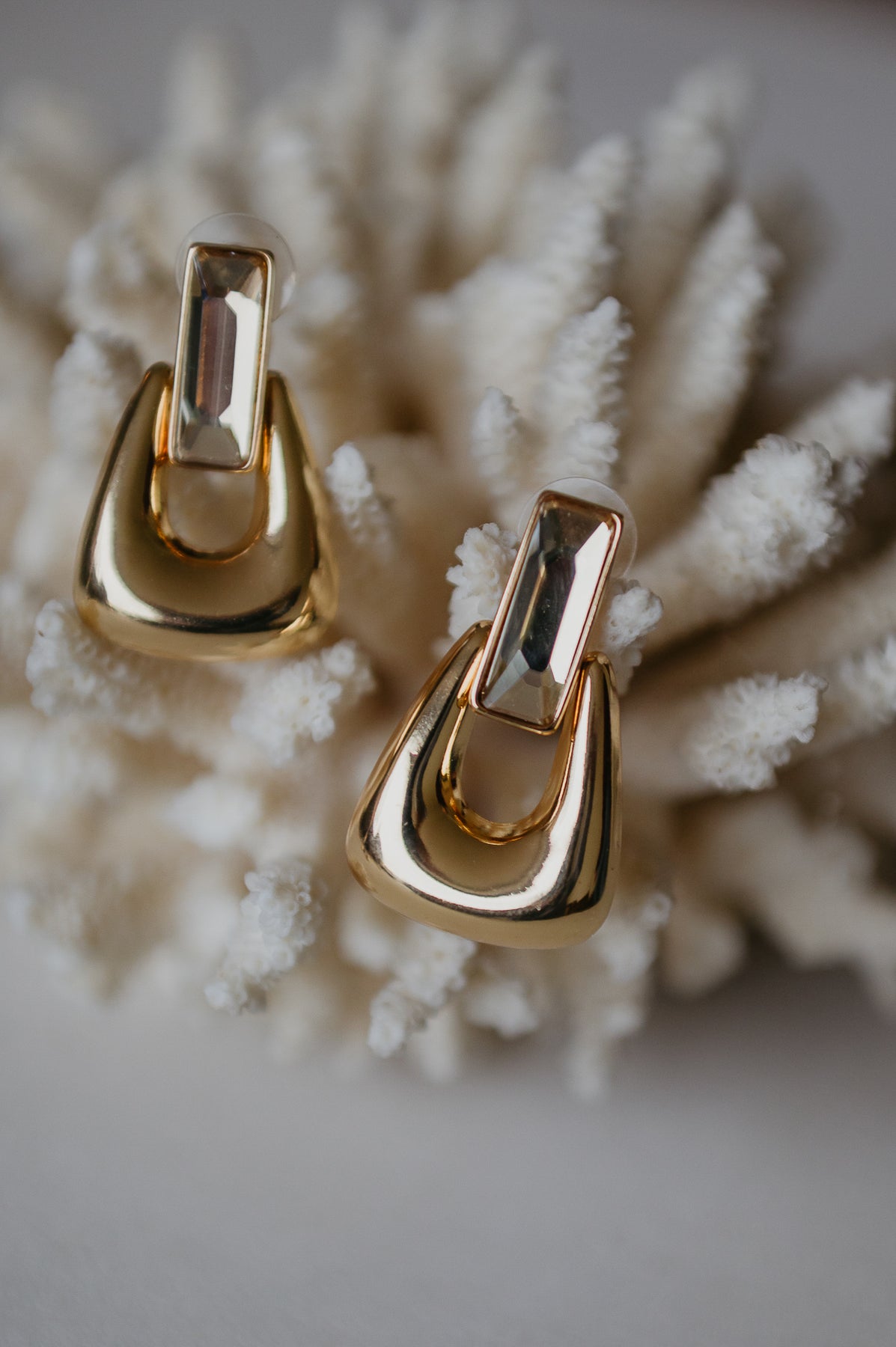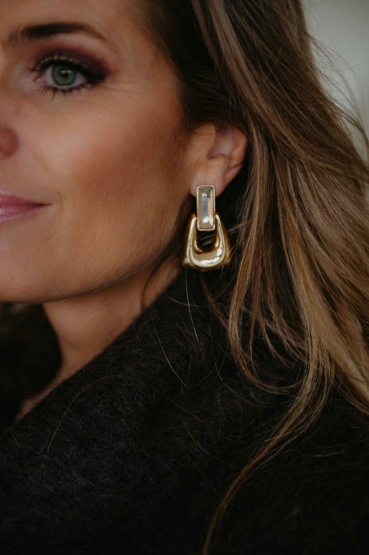 Deze toffe gouden oorbellen met een goude steen zijn perfect om te dragen op een feestje.