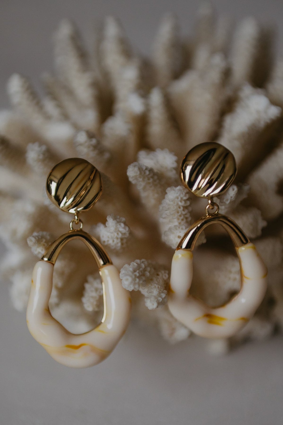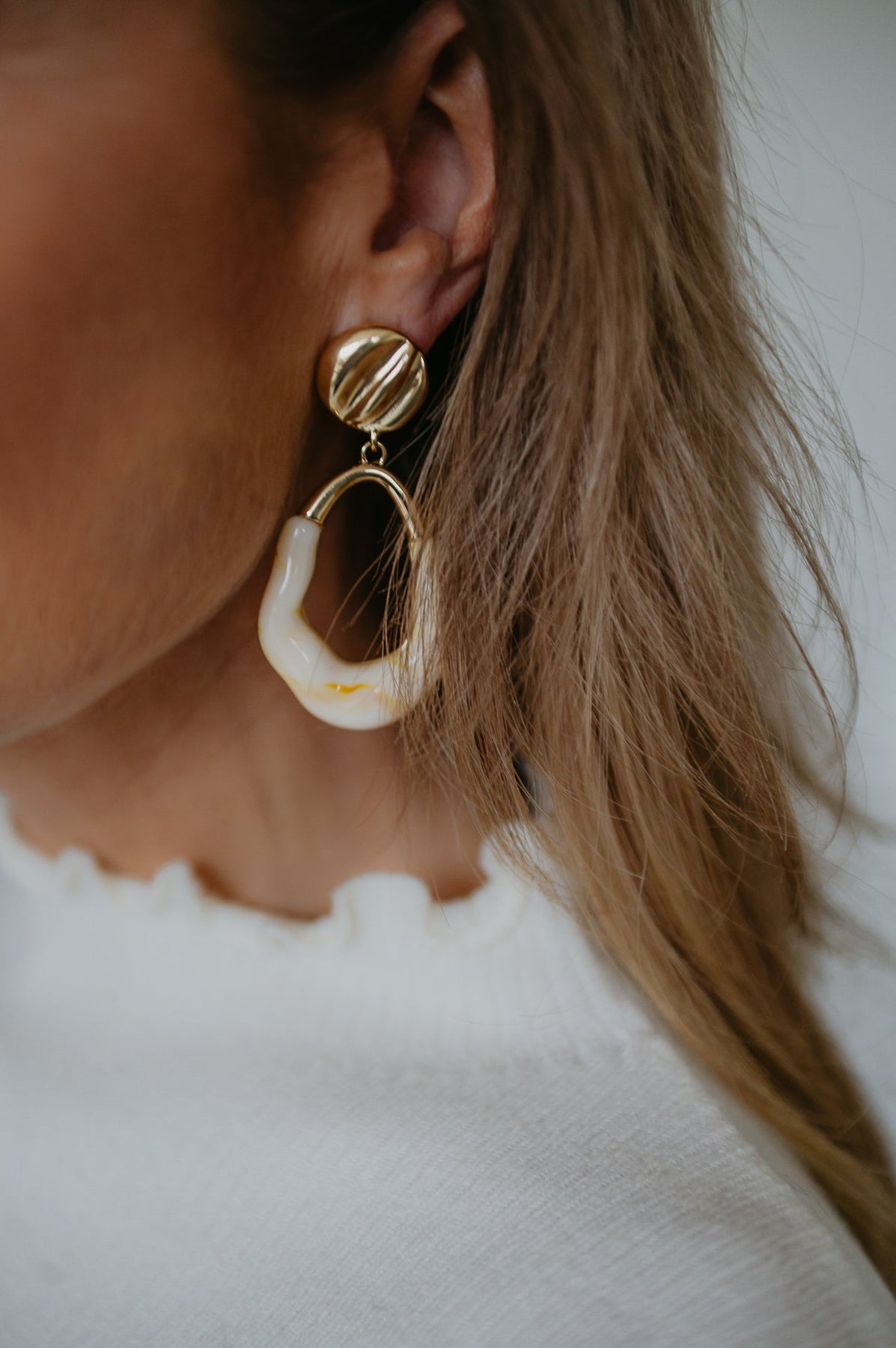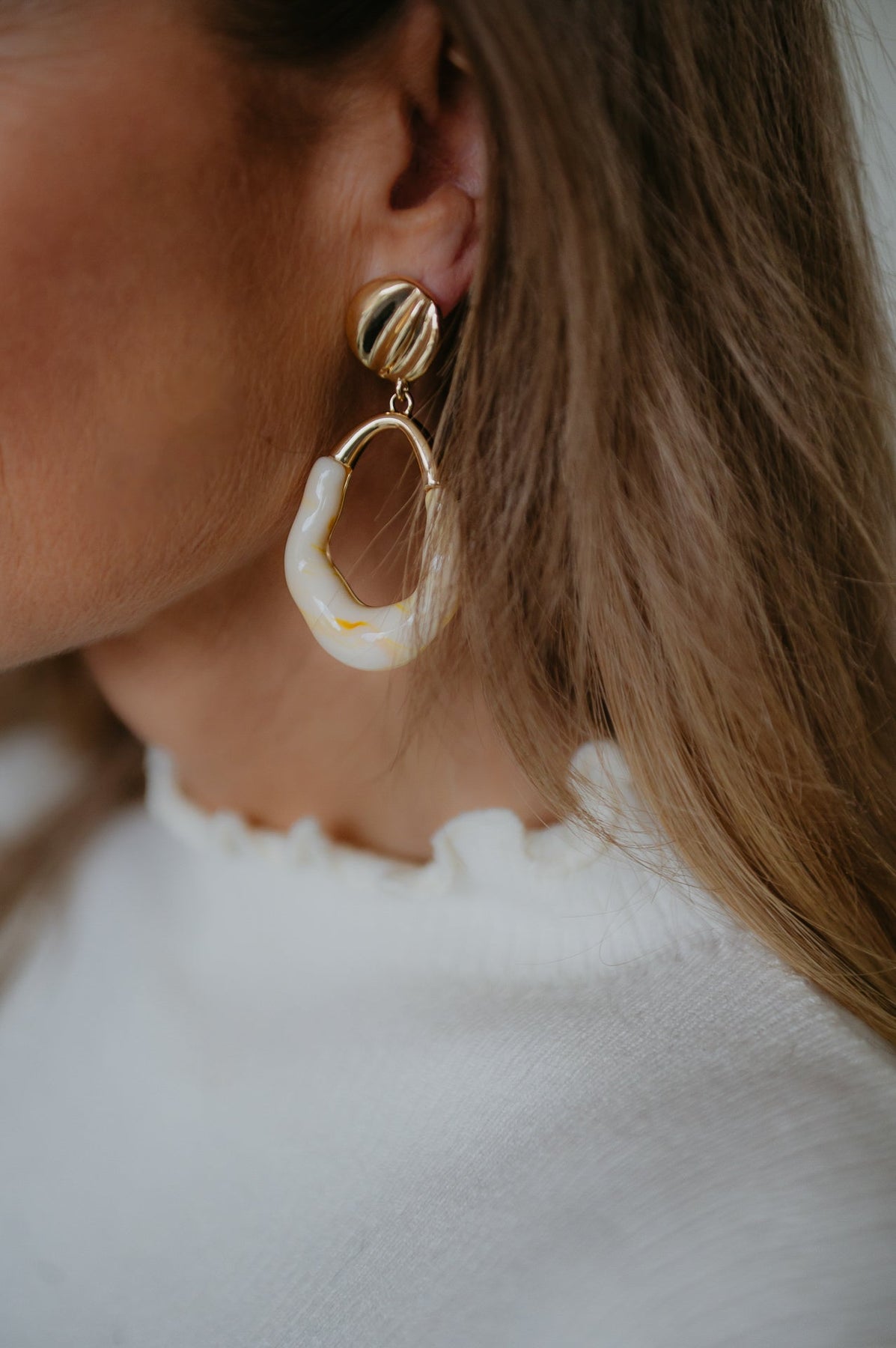 Deze oorbellen zijn mooi opvallend en hebben een stijlvol beige detail dat elke outfit net dat tikkeltje extra geeft.