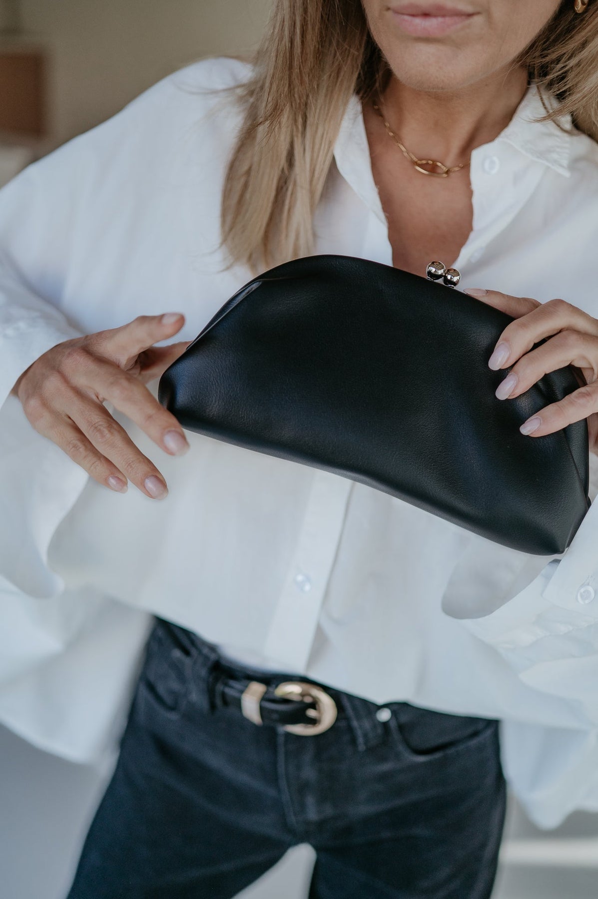 Dit kleine tasje is ideaal voor je essentials en kan op meerdere manieren gedragen worden: gewoon in de hand of aan de ketting voor een speelse twist.