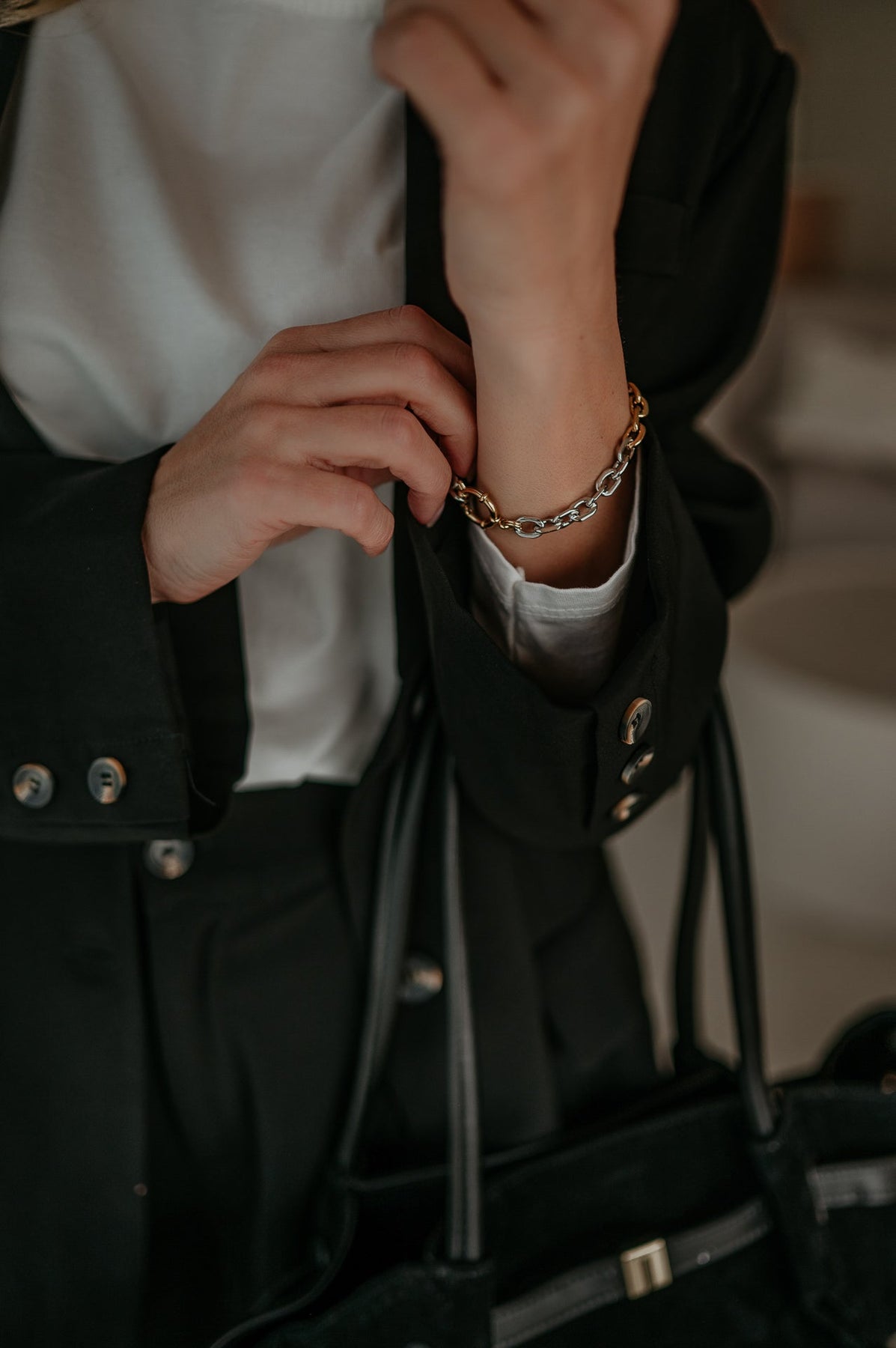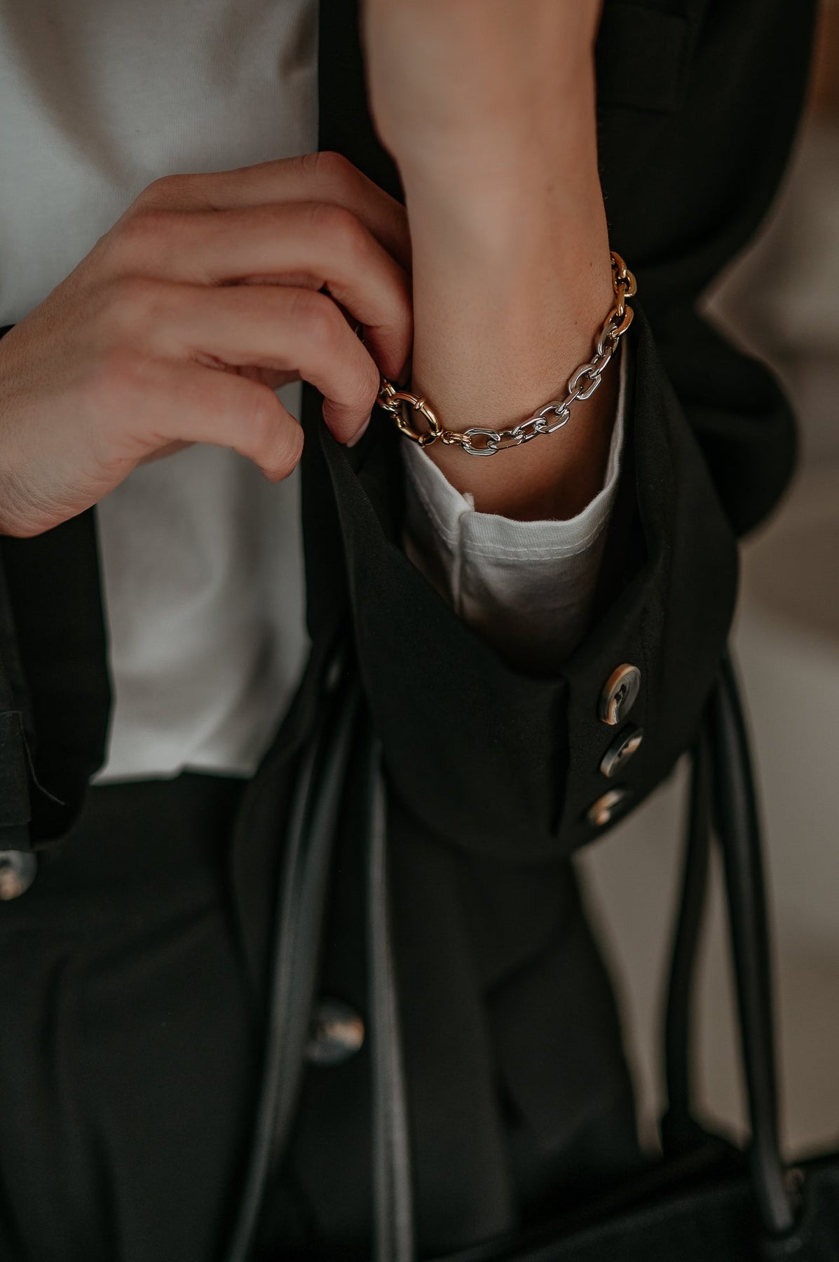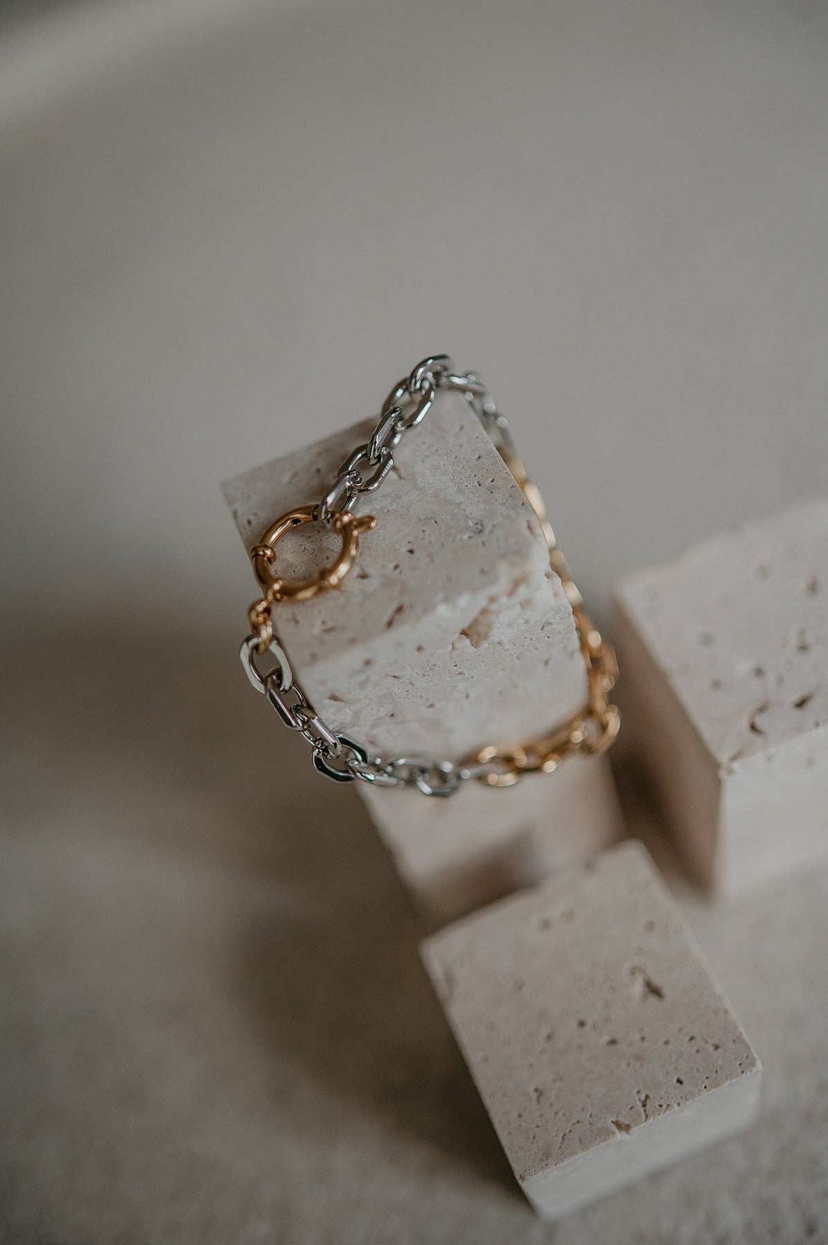 Schakel armbandje in een mooie combinatie van goud en zilver.