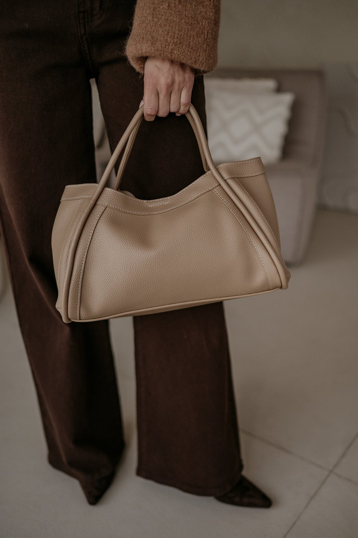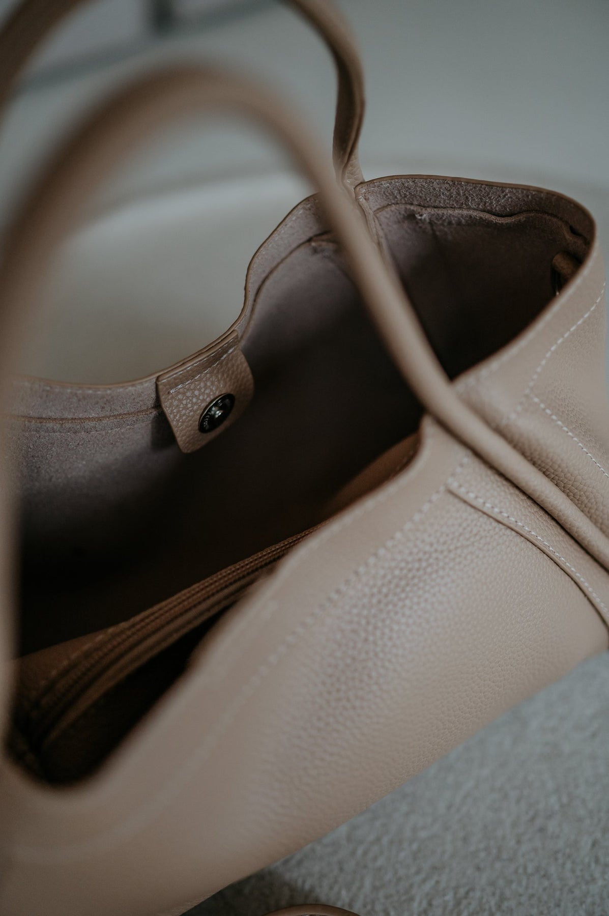 De tas sluit met een knop, waardoor ze niet alleen praktisch maar ook stijlvol is.
