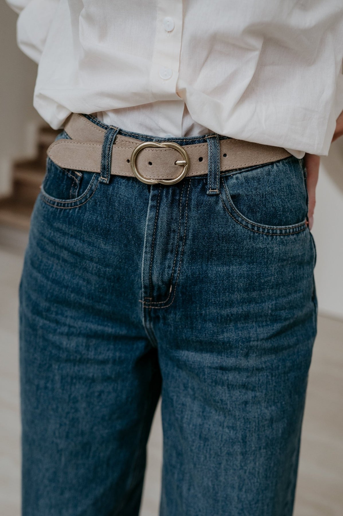 Deze suède riem is een pareltje op zichzelf en is verkrijgbaar in verschillende afmetingen.