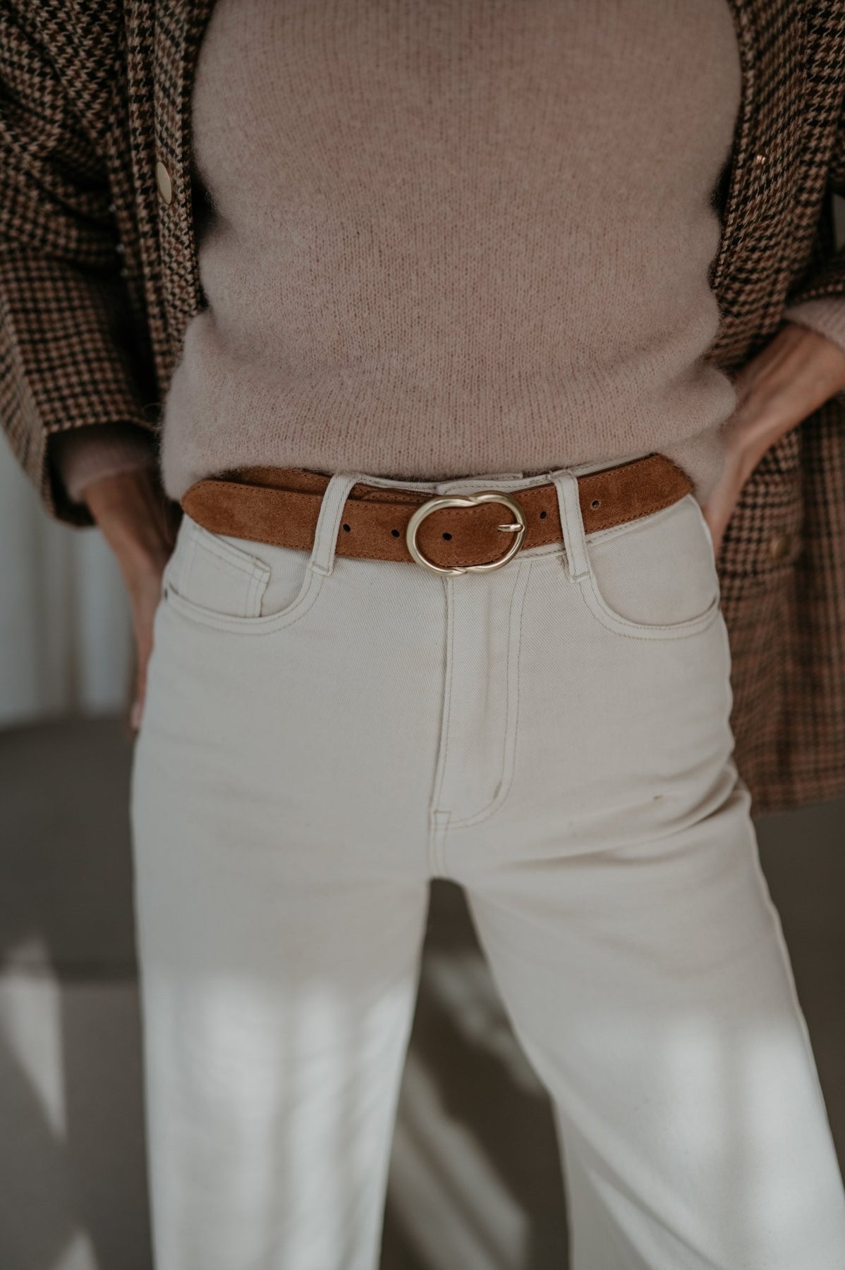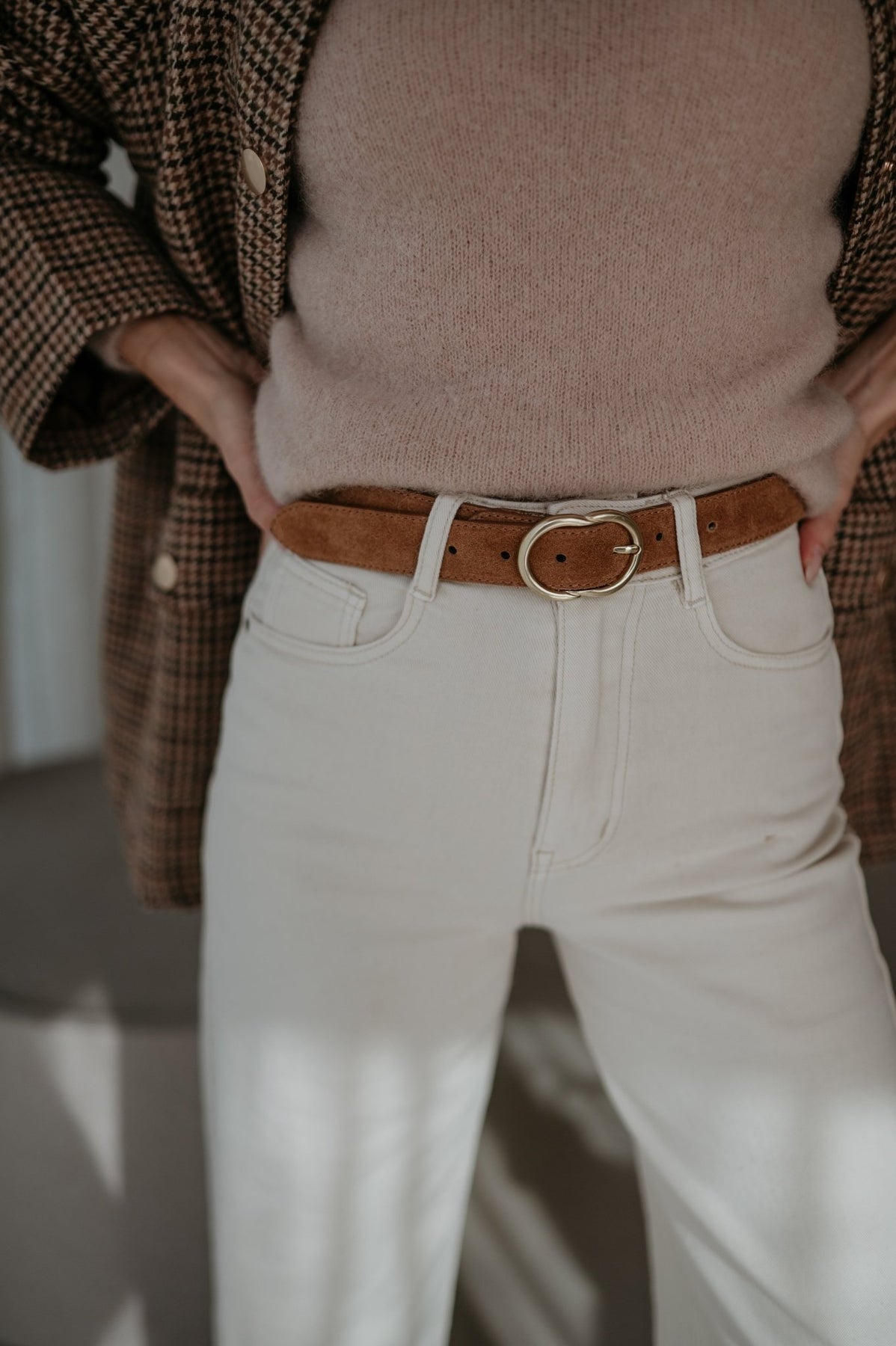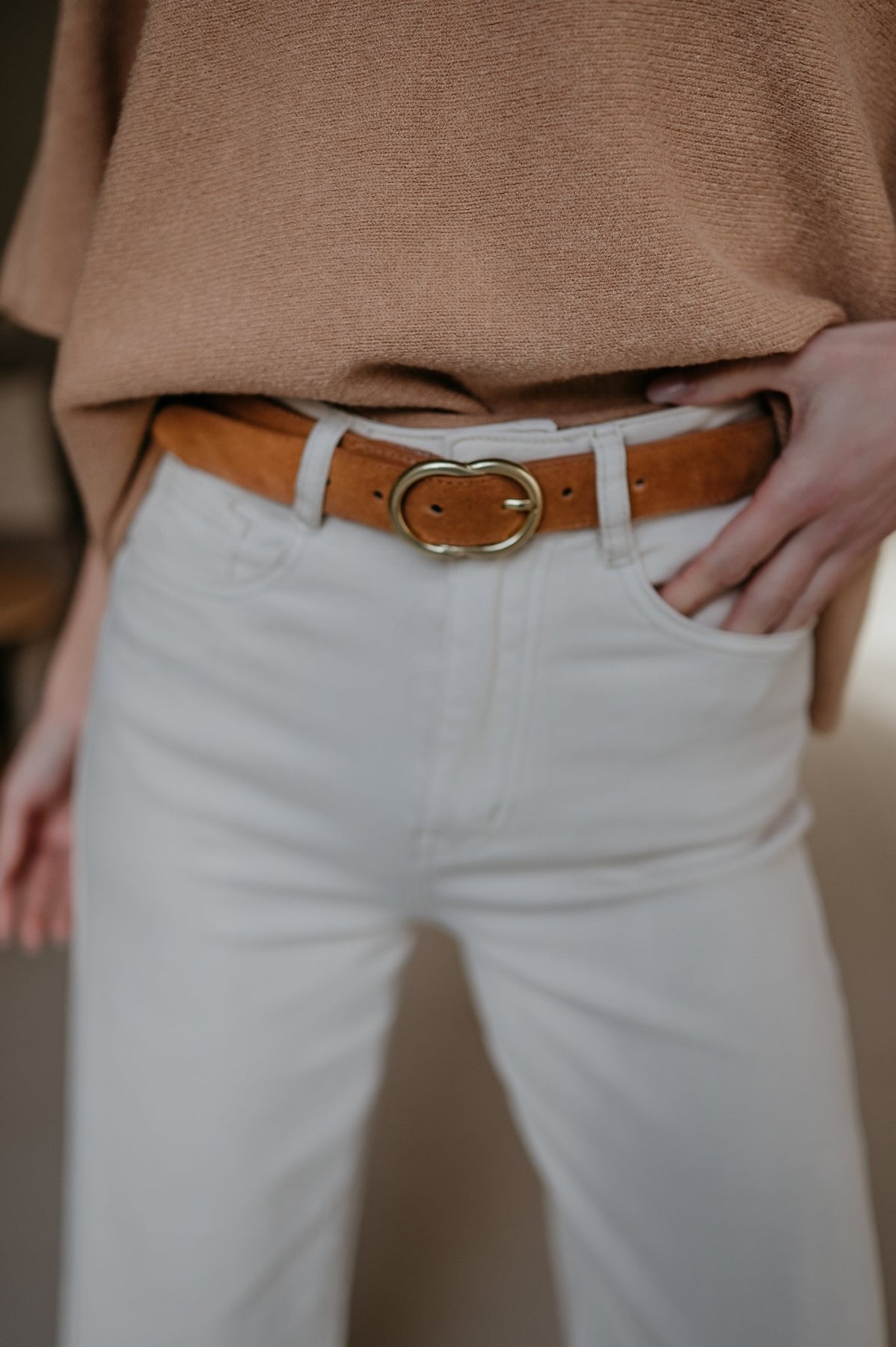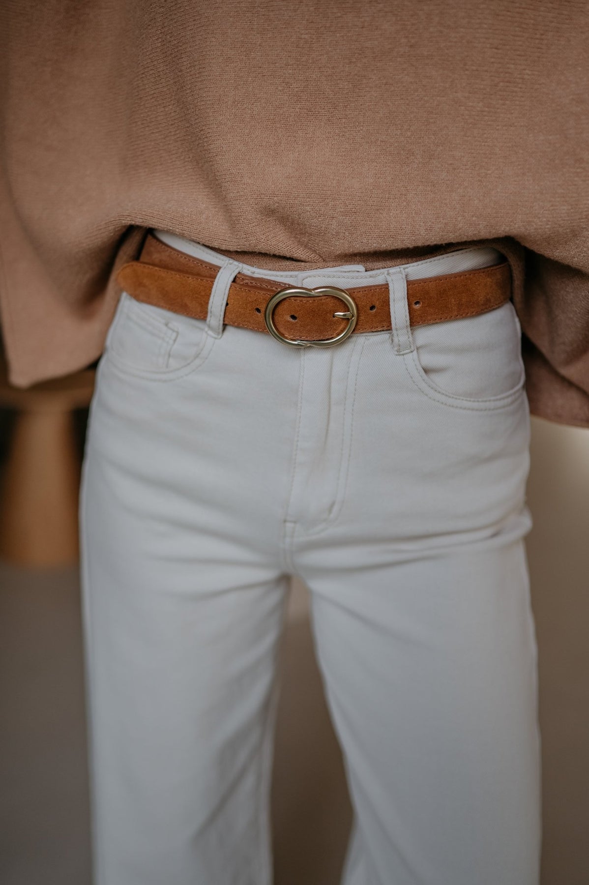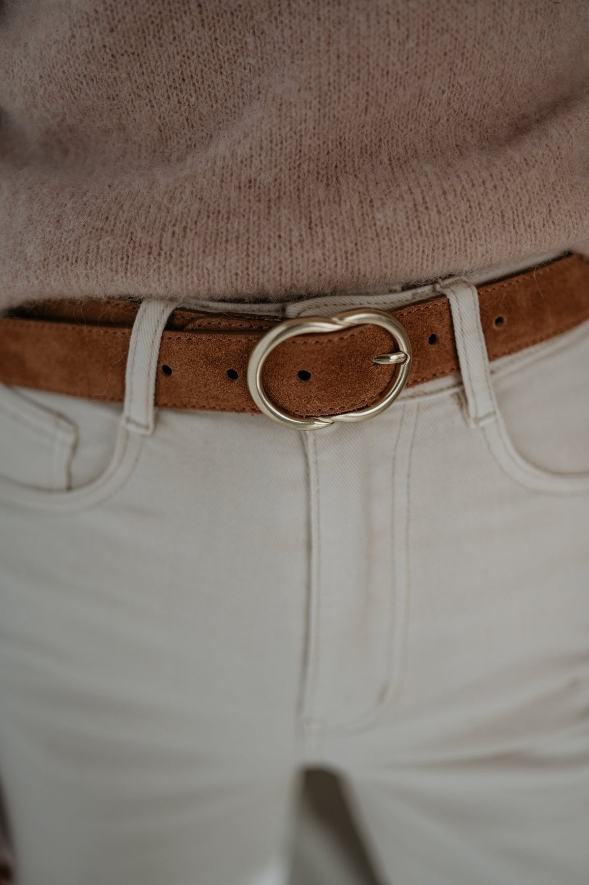 Deze suède riem is een pareltje op zichzelf en is verkrijgbaar in verschillende afmetingen.