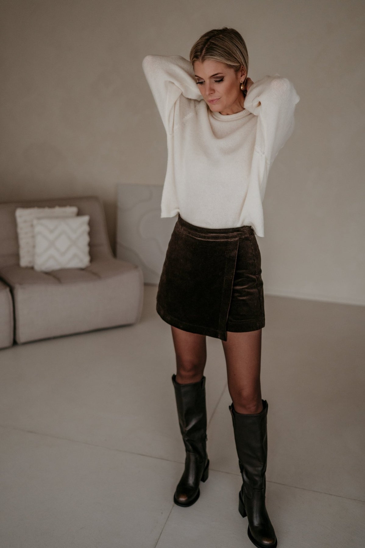 Het zachte materiaal zorgt voor comfort en warmte, terwijl het tijdloze model makkelijk te combineren is met jeans, rok of pantalon.