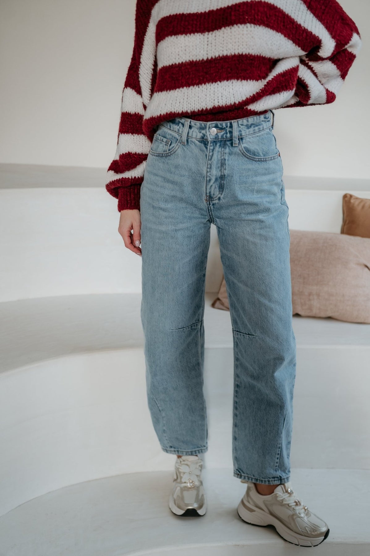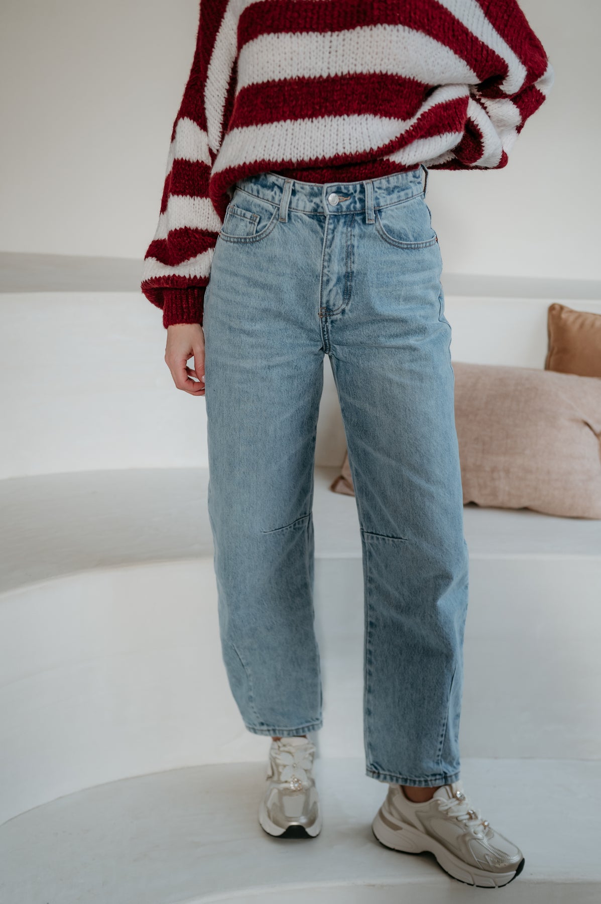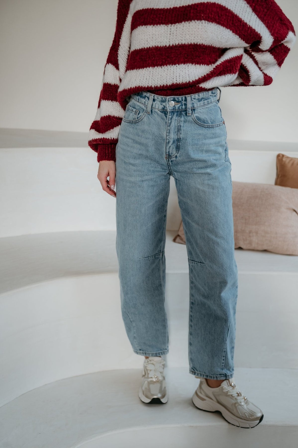 Deze prachtige barrel jeans in een mega mooie, tijdloze jeanskleur is dé perfecte balans tussen comfort en stijl.