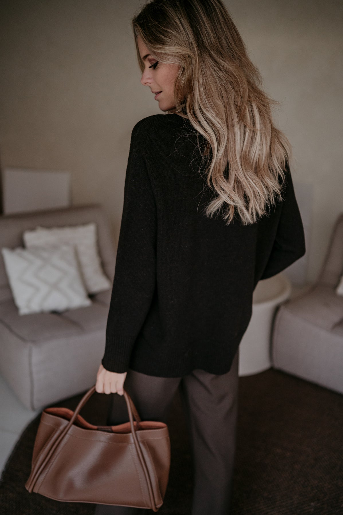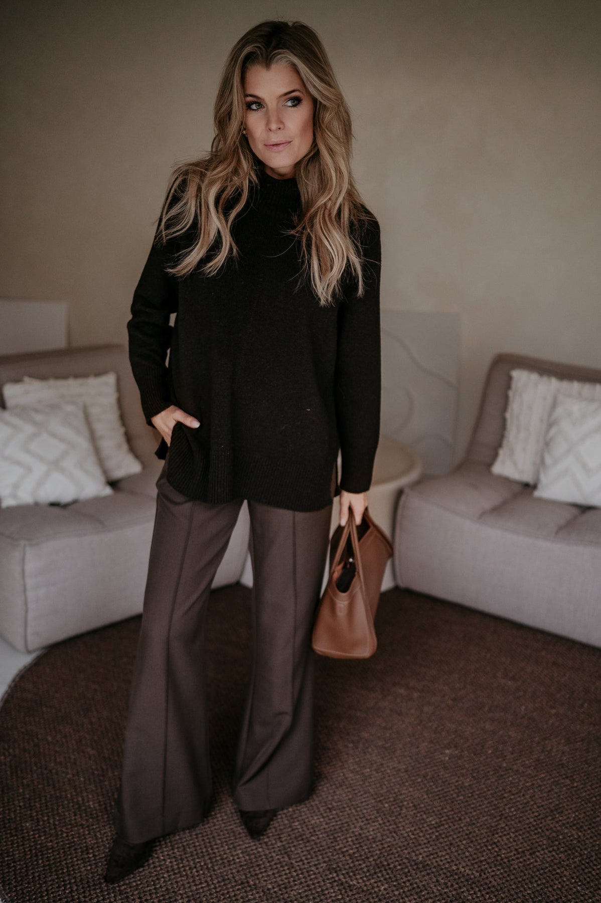 Heel mooie trui met een elegante hals en een subtiel langer model achteraan dan vooraan.