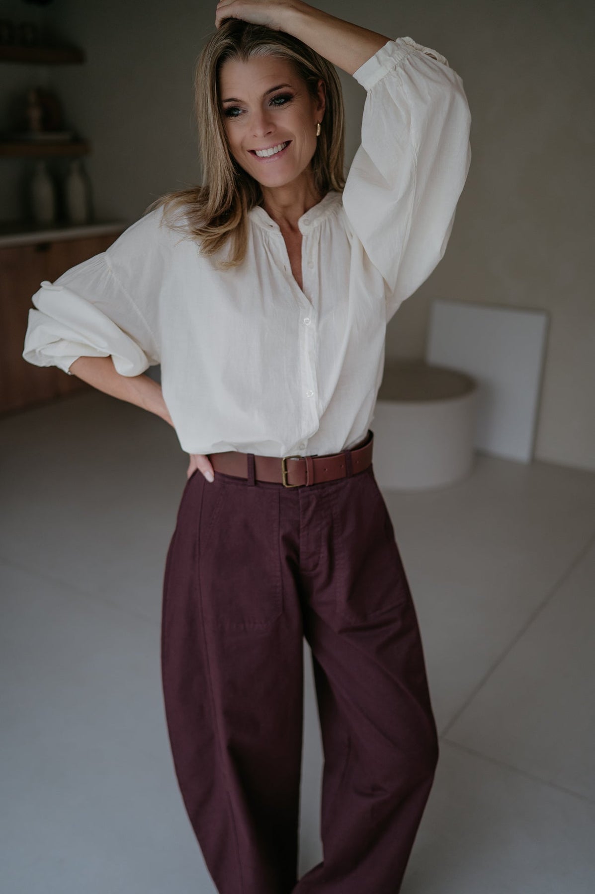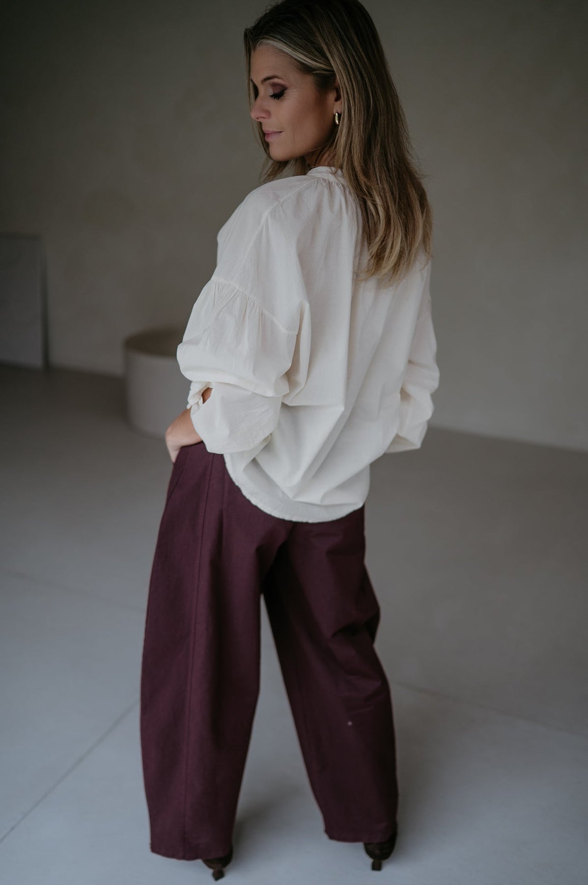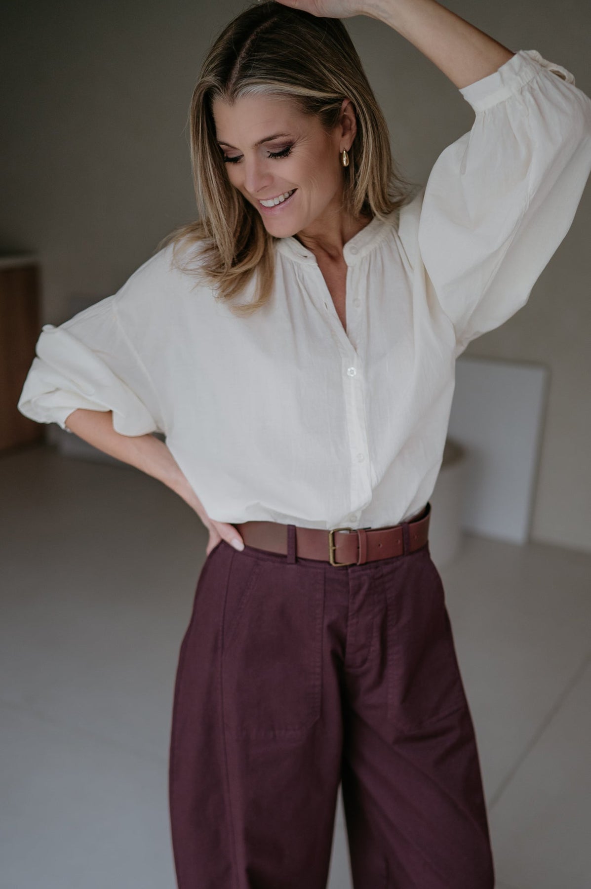 Dit heel mooie bloesje met ballonmouwen geeft je look een speelse en elegante touch.