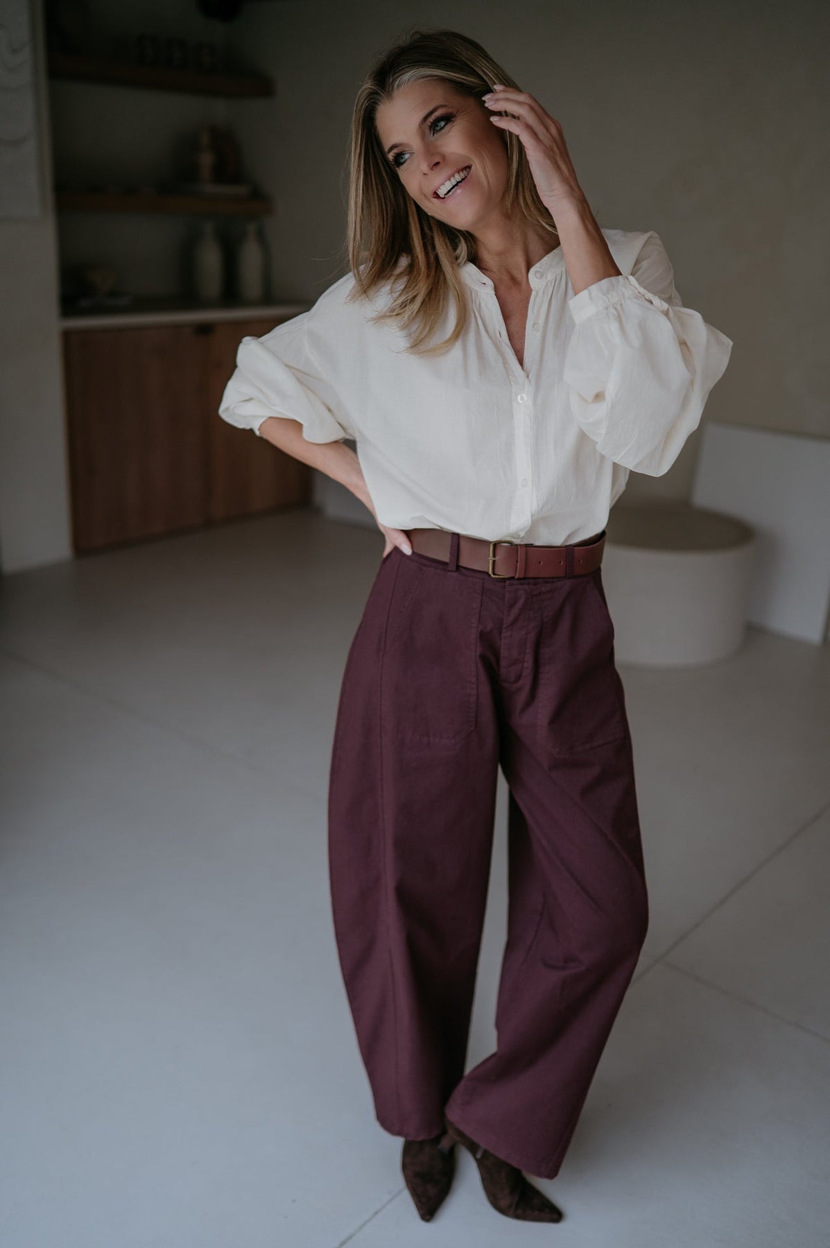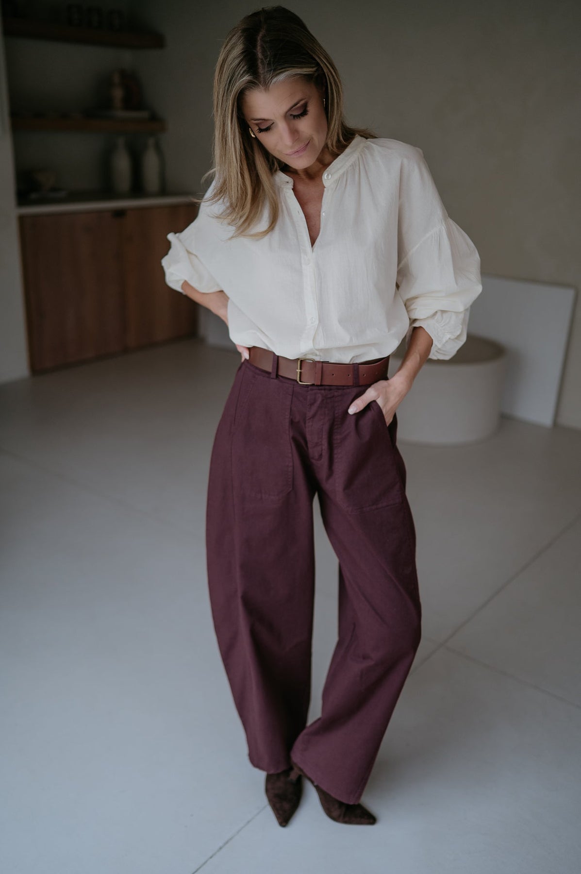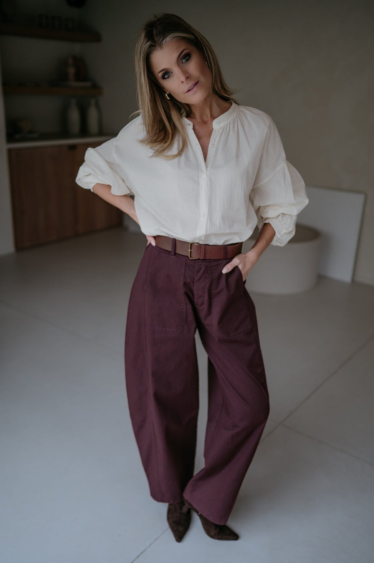 Dit heel mooie bloesje met ballonmouwen geeft je look een speelse en elegante touch.