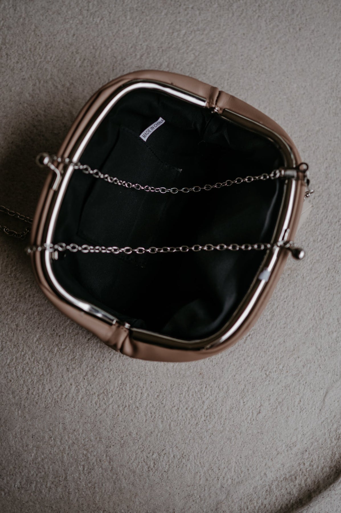 Dit kleine tasje is ideaal voor je essentials en kan op meerdere manieren gedragen worden: gewoon in de hand of aan de ketting voor een speelse twist.
