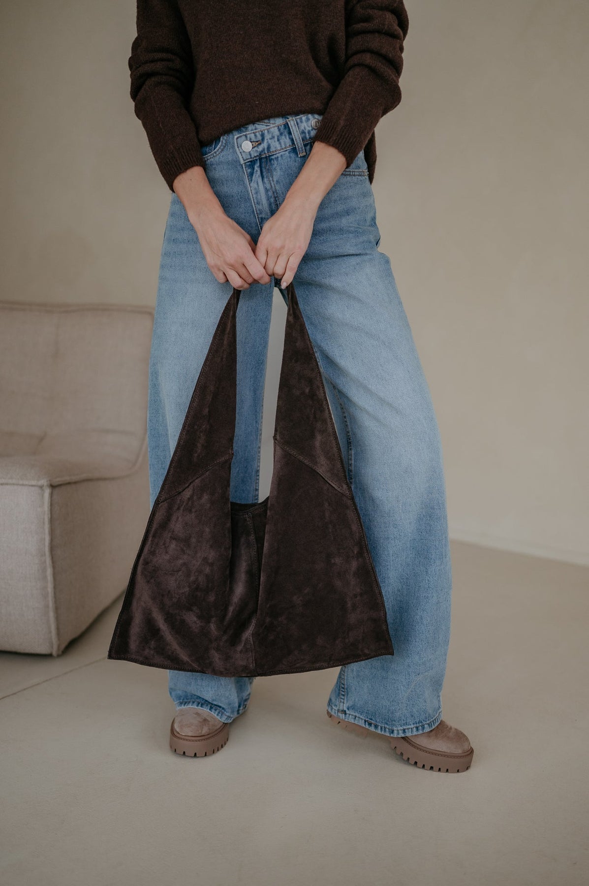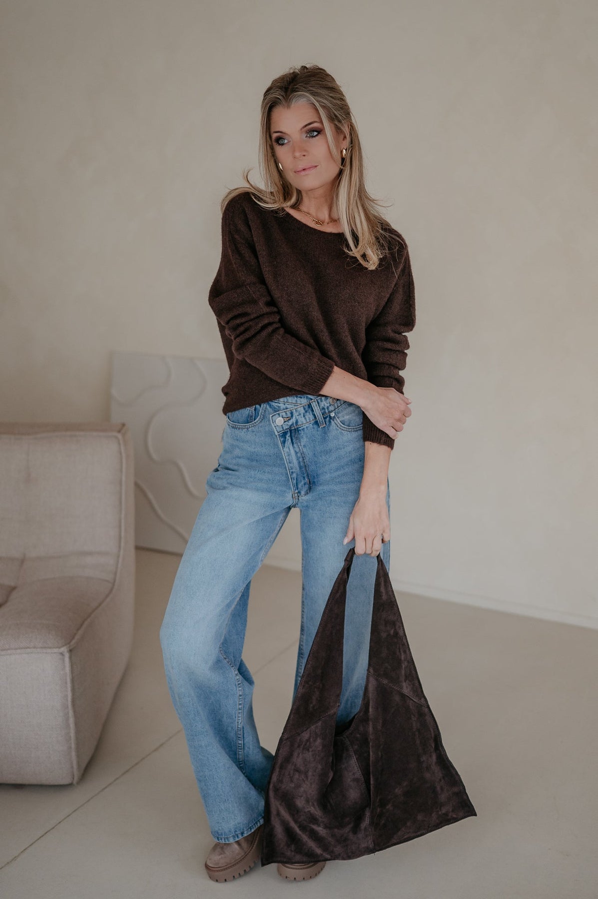 Prachtige chocoladebruine tas die je elegant over je schouder kan dragen.