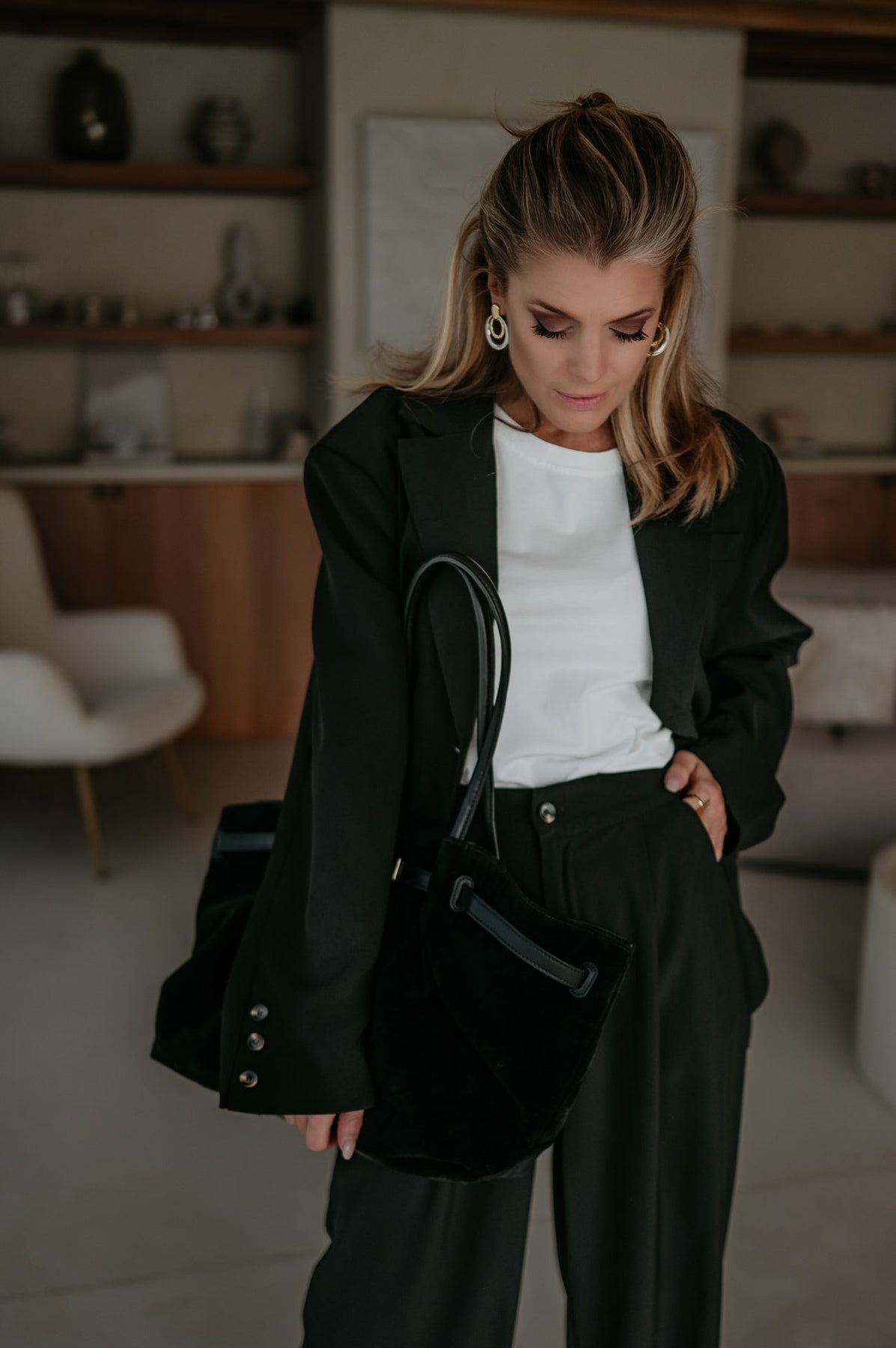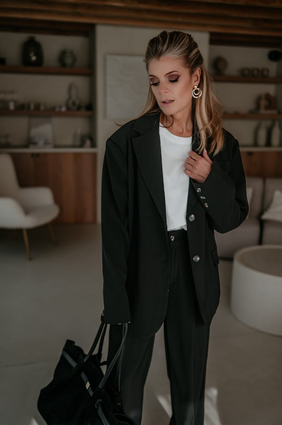 Combineer hem met de bijpassende broek voor een complete, chique set, of draag hem casual op een jeans voor een moderne, relaxte look.