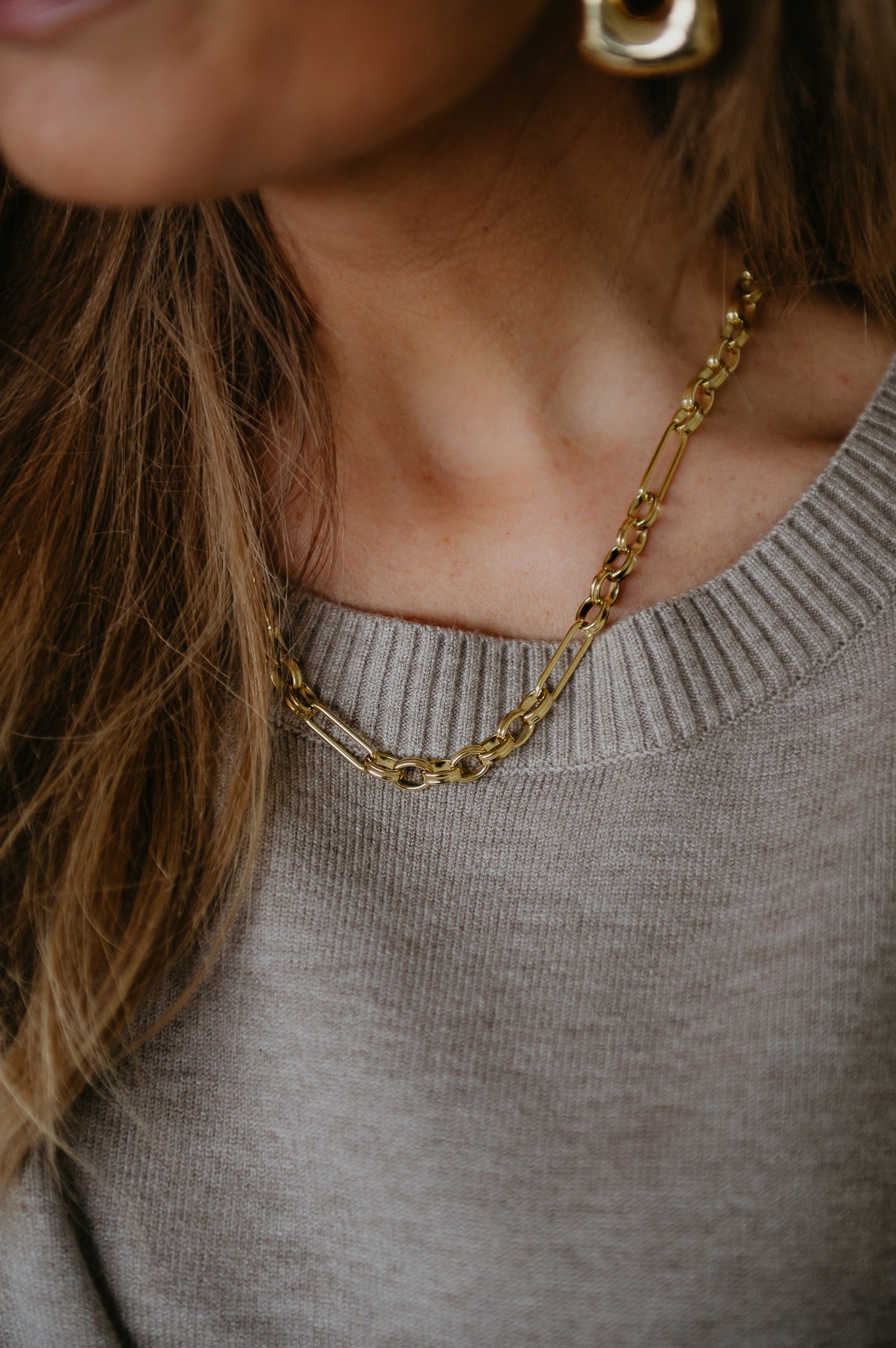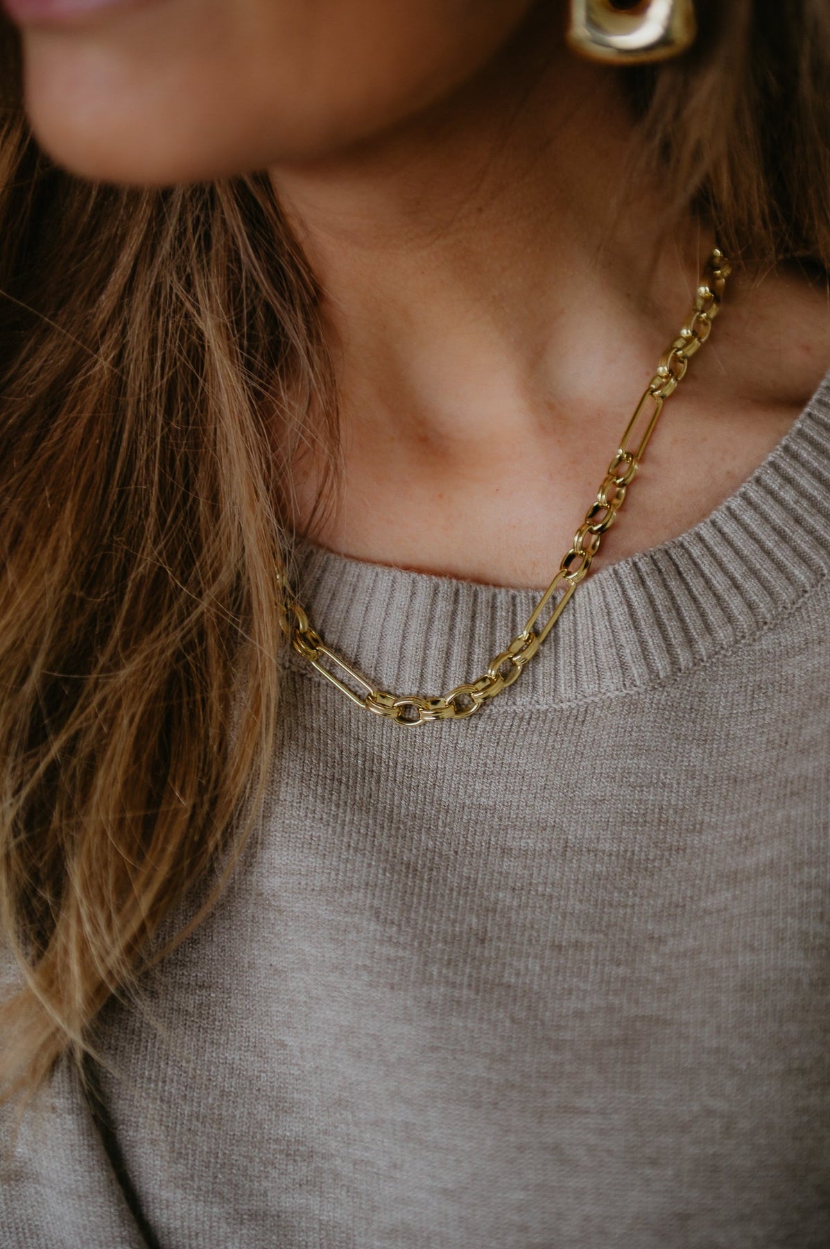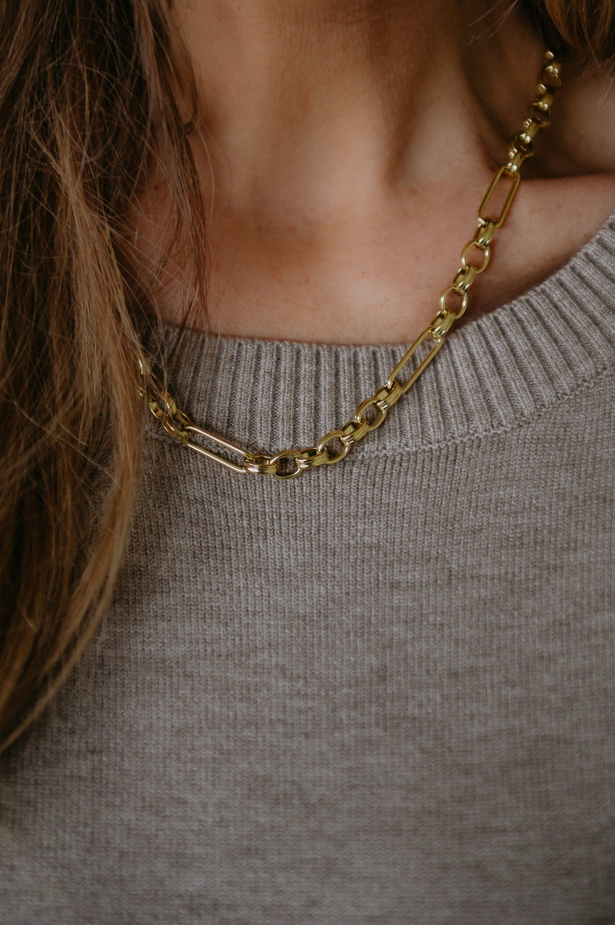 Deze schakelketting is een echte eyecatcher dankzij de combinatie van grote en kleine schakels.