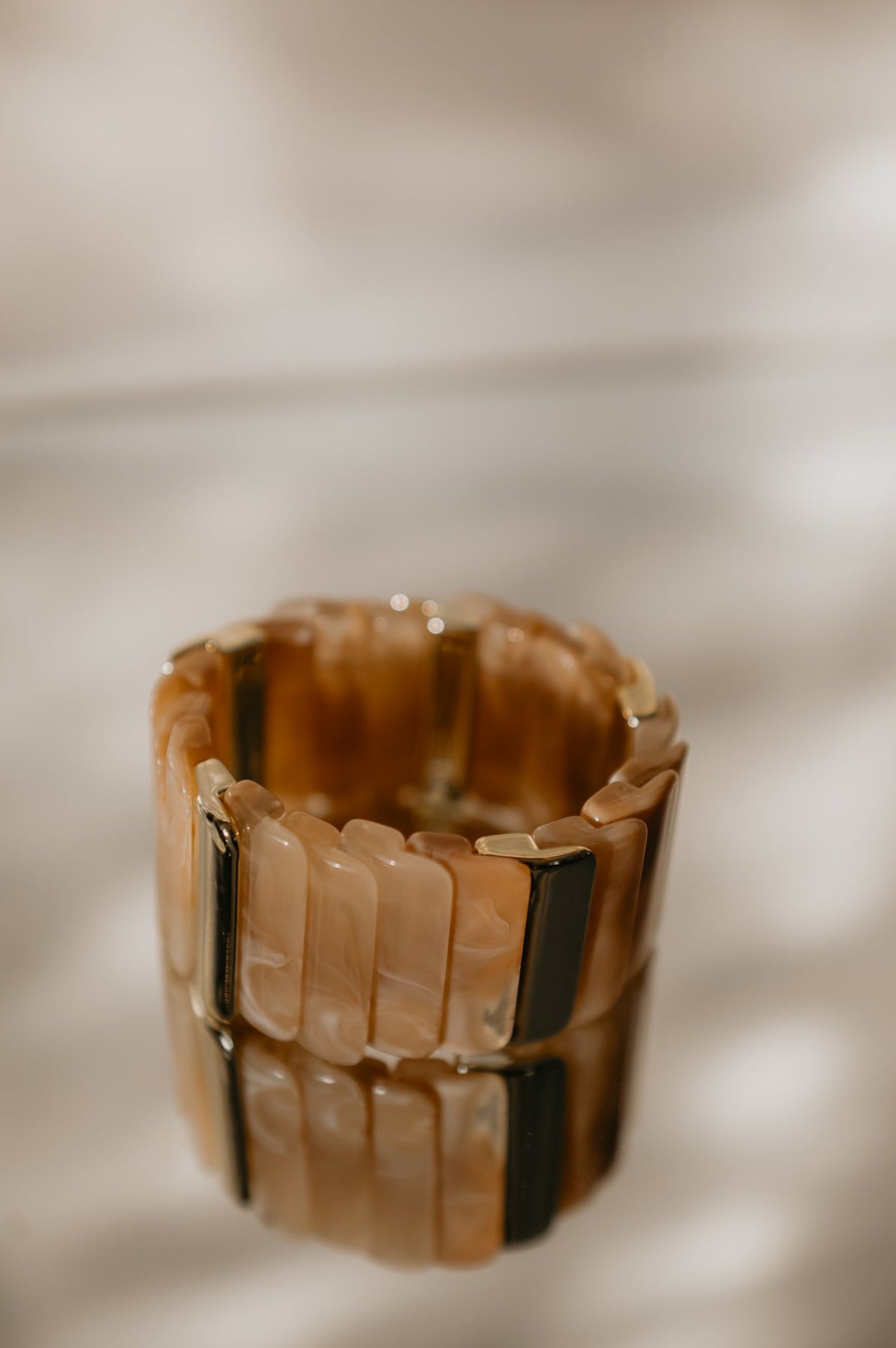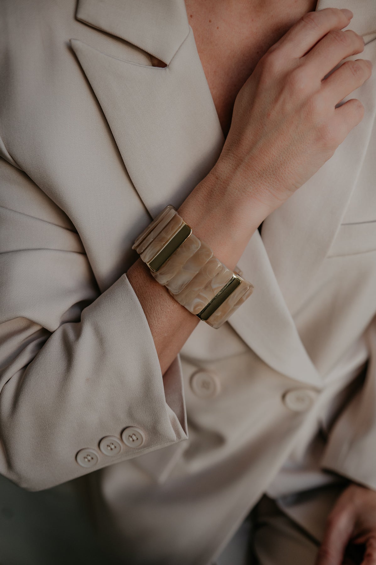 Een mooie beige armband met subtiele gouden details die elke outfit net dat beetje extra geeft.
