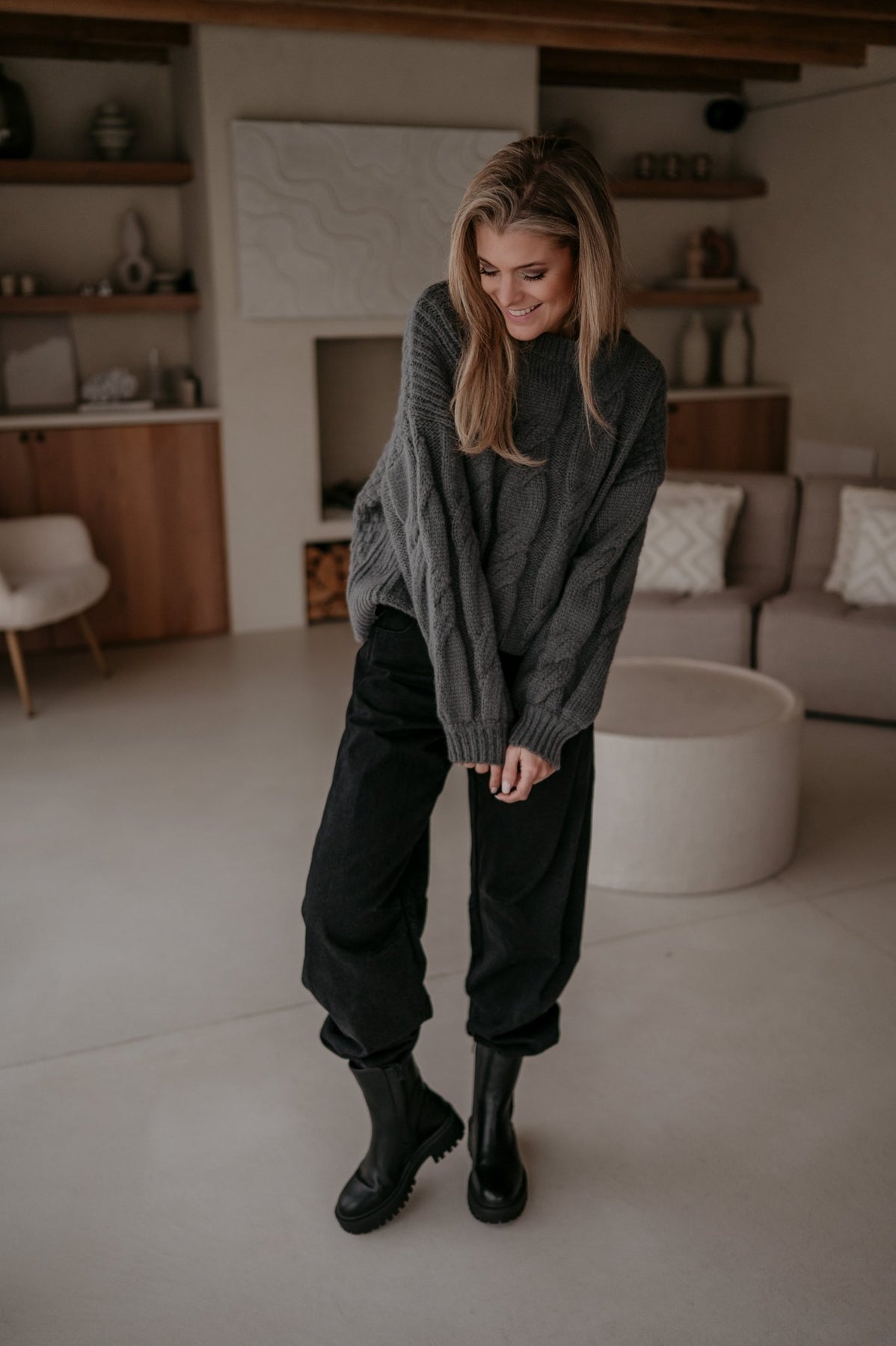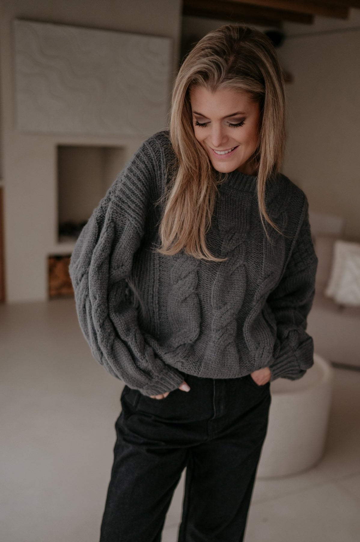 Het prachtige breipatroon geeft een tijdloze en stijlvolle uitstraling, terwijl de zachte stof zorgt voor ultiem comfort.
