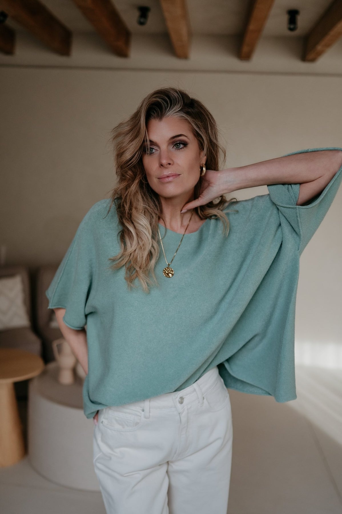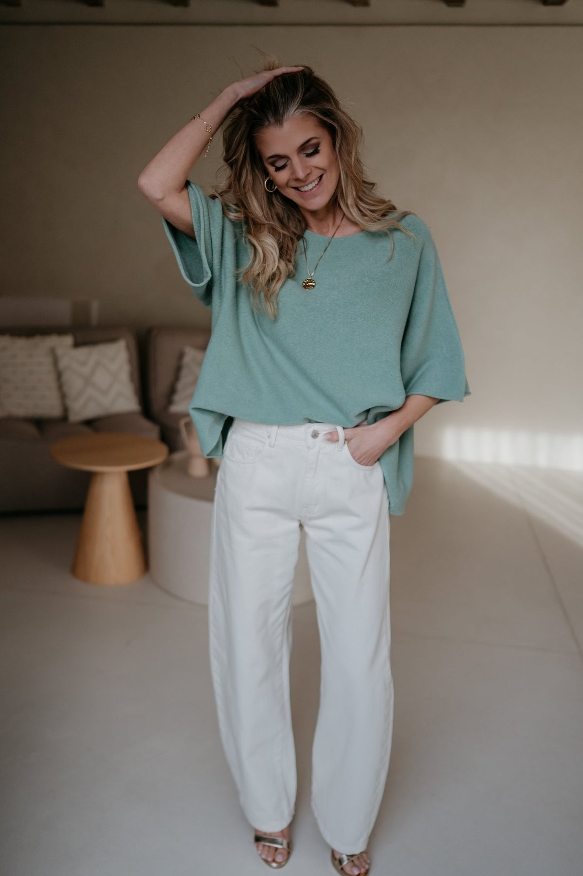 Deze mega zachte knit is het ideale truitje voor de lente.