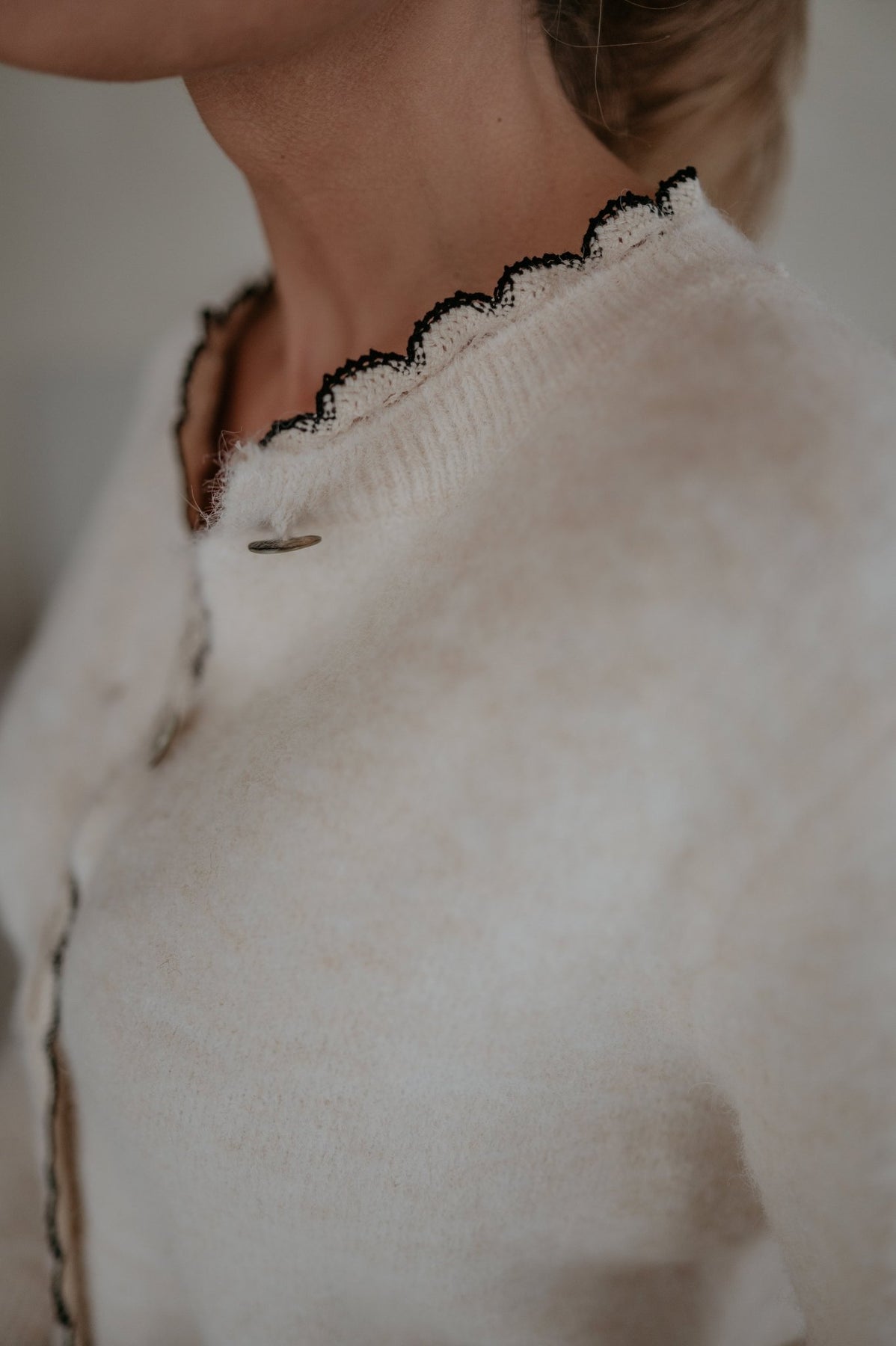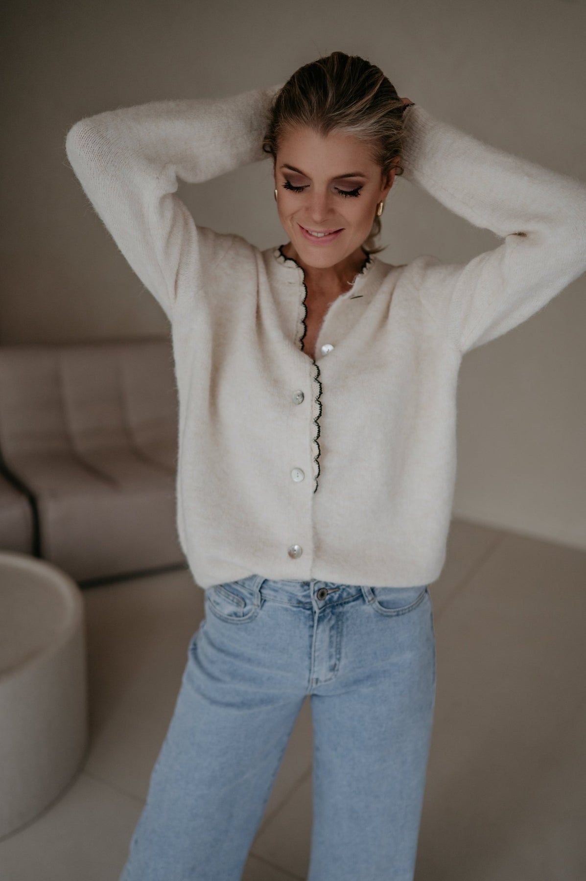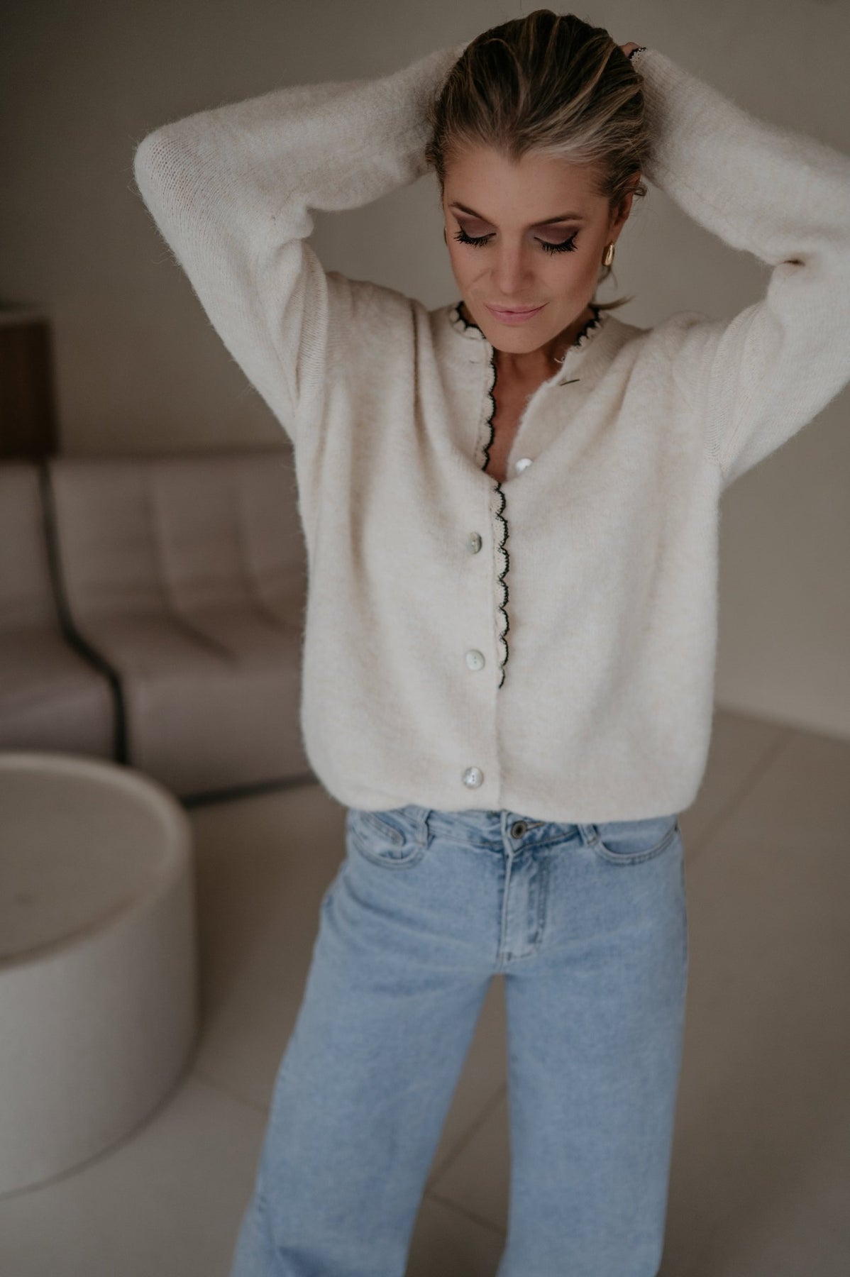 Prachtige cardigan met mooie knoopjes en een fijn kanten details.