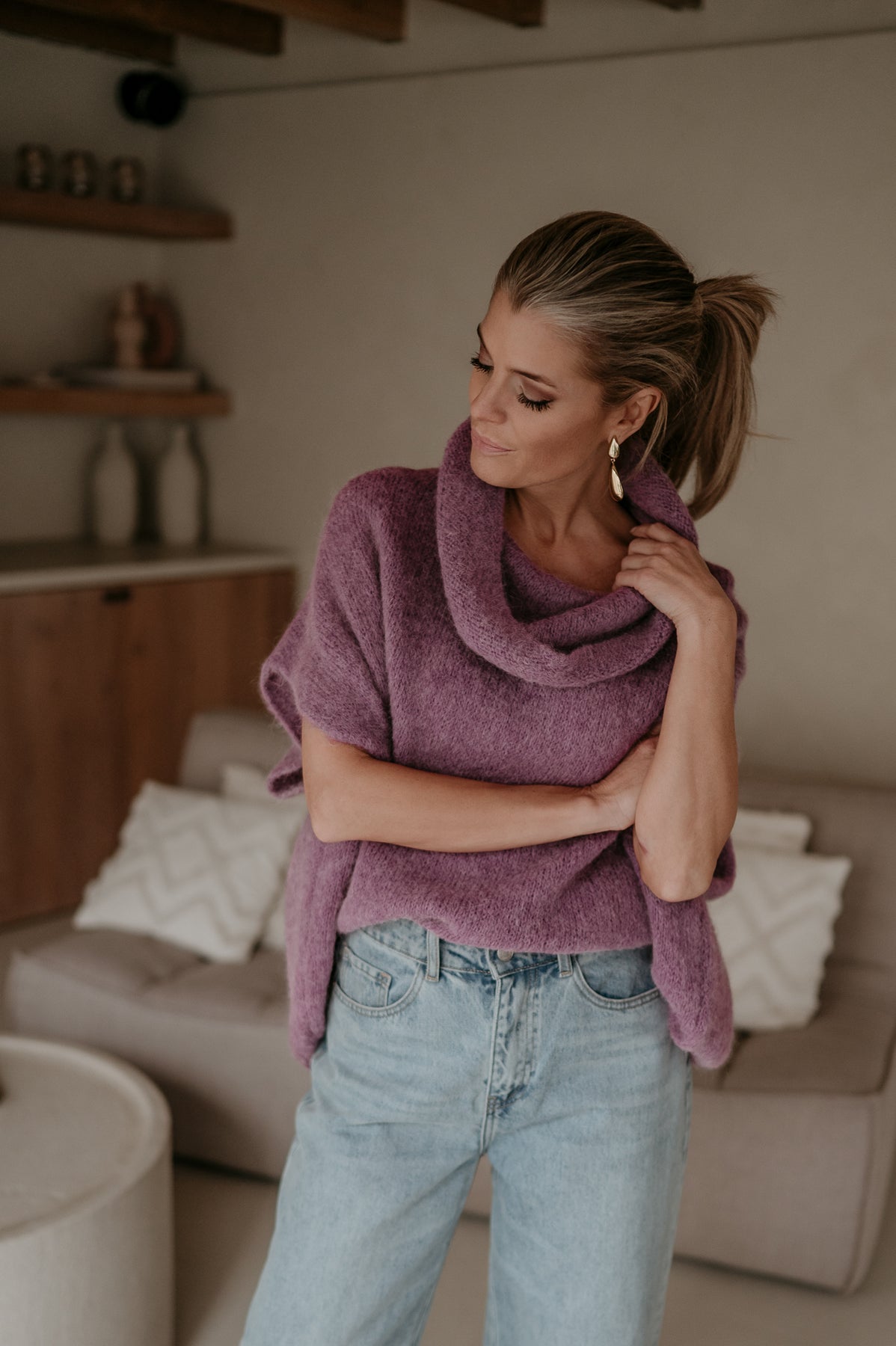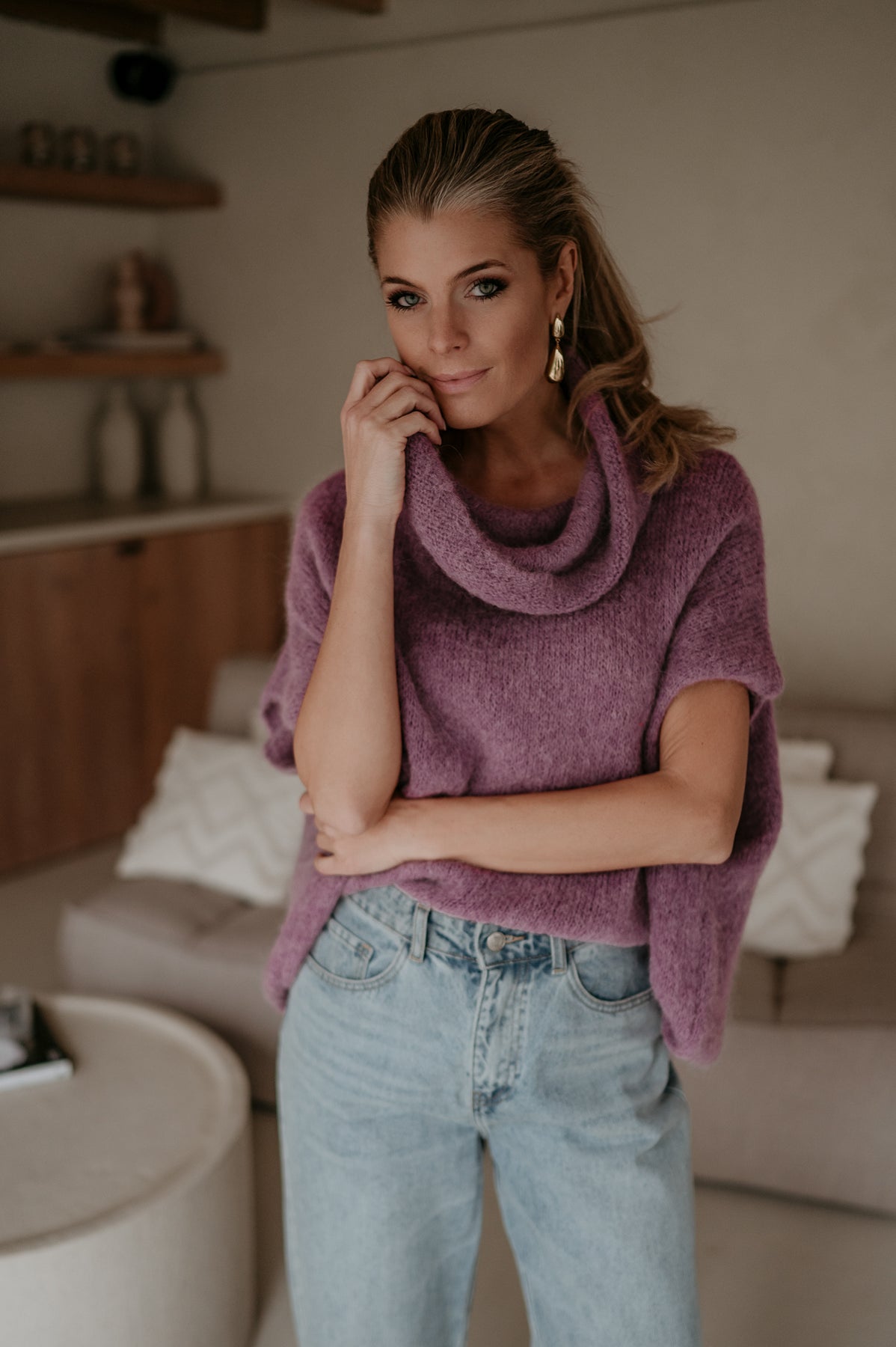 Deze prachtige trui met een elegante col en korte mouwtjes is een veelzijdig stuk dat je op verschillende manieren kunt dragen.