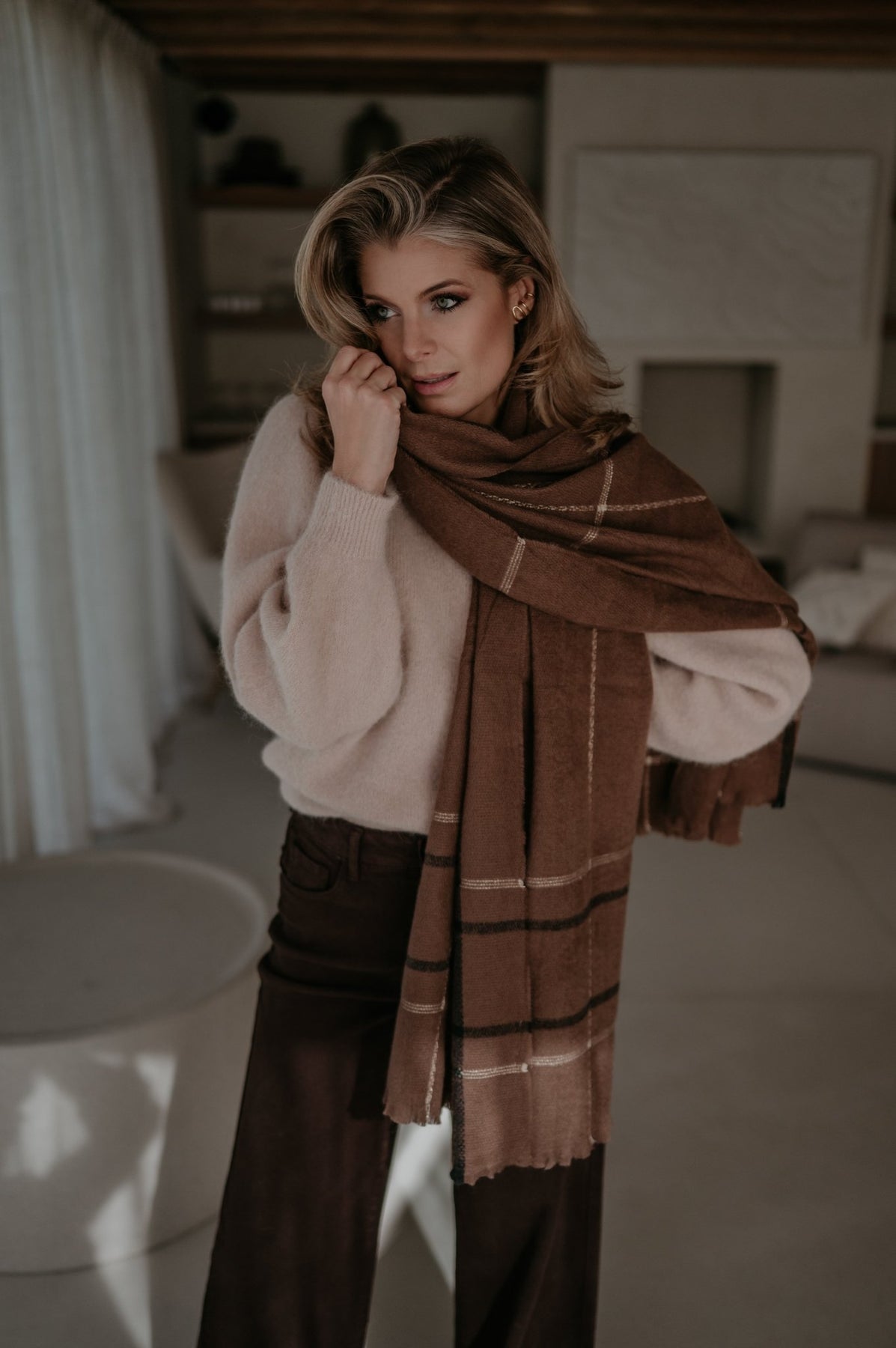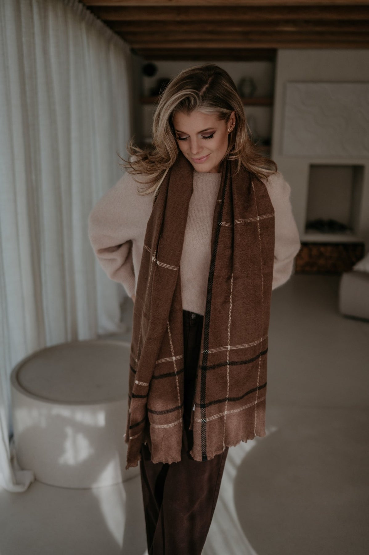 Heel toffe bruine sjaal die je outfit direct een warme en stijlvolle touch geeft.