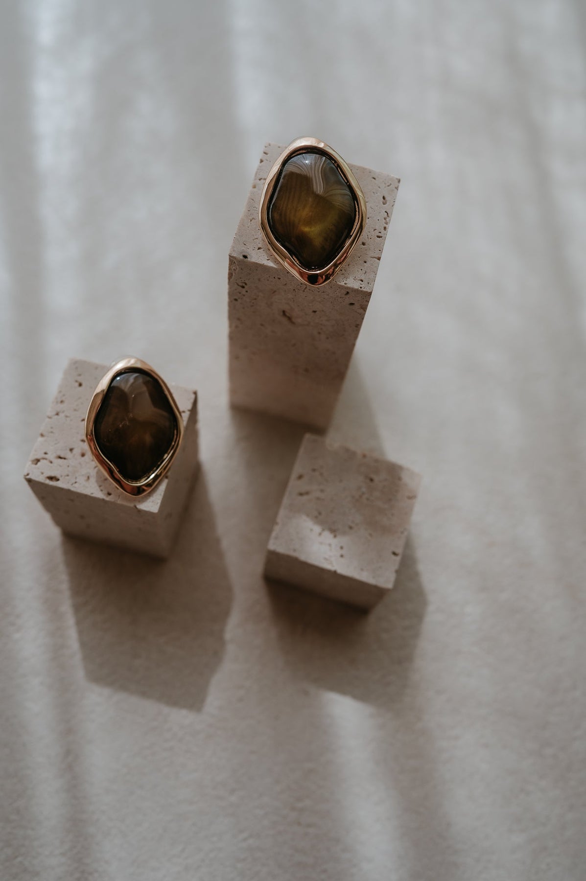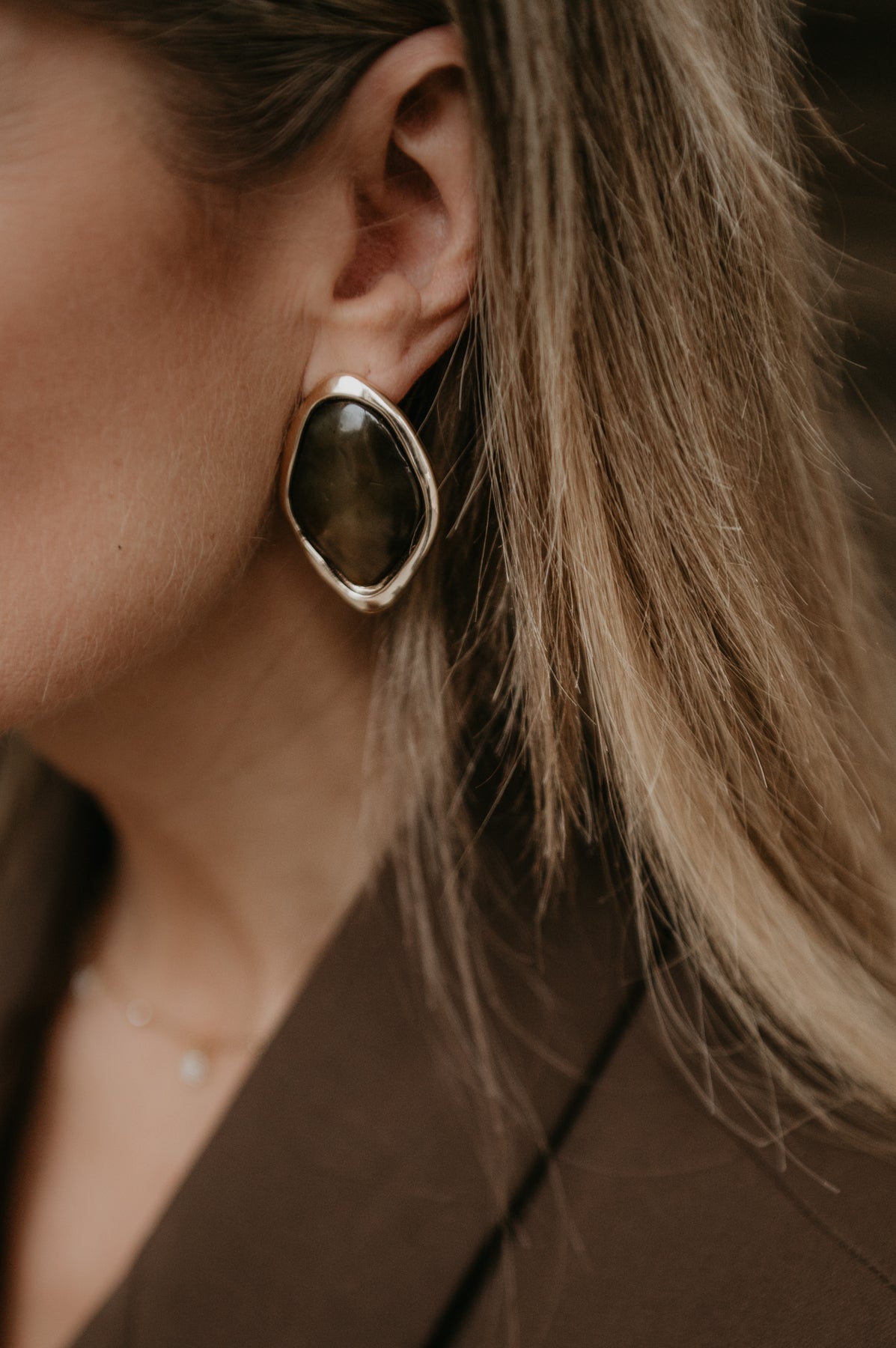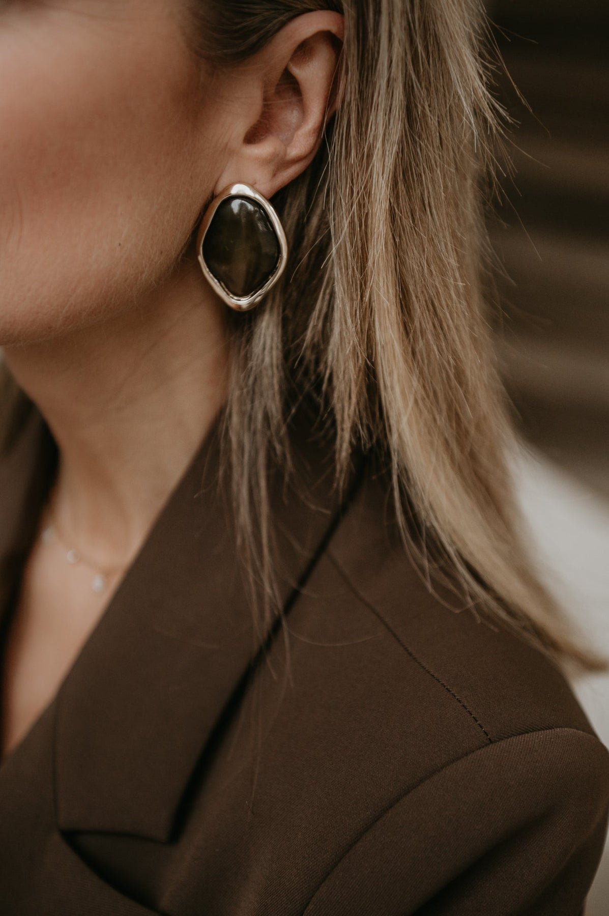 Mooie bruin/khaki kleurige oorbellen die een natuurlijke en stijlvolle touch aan je outfit geven.