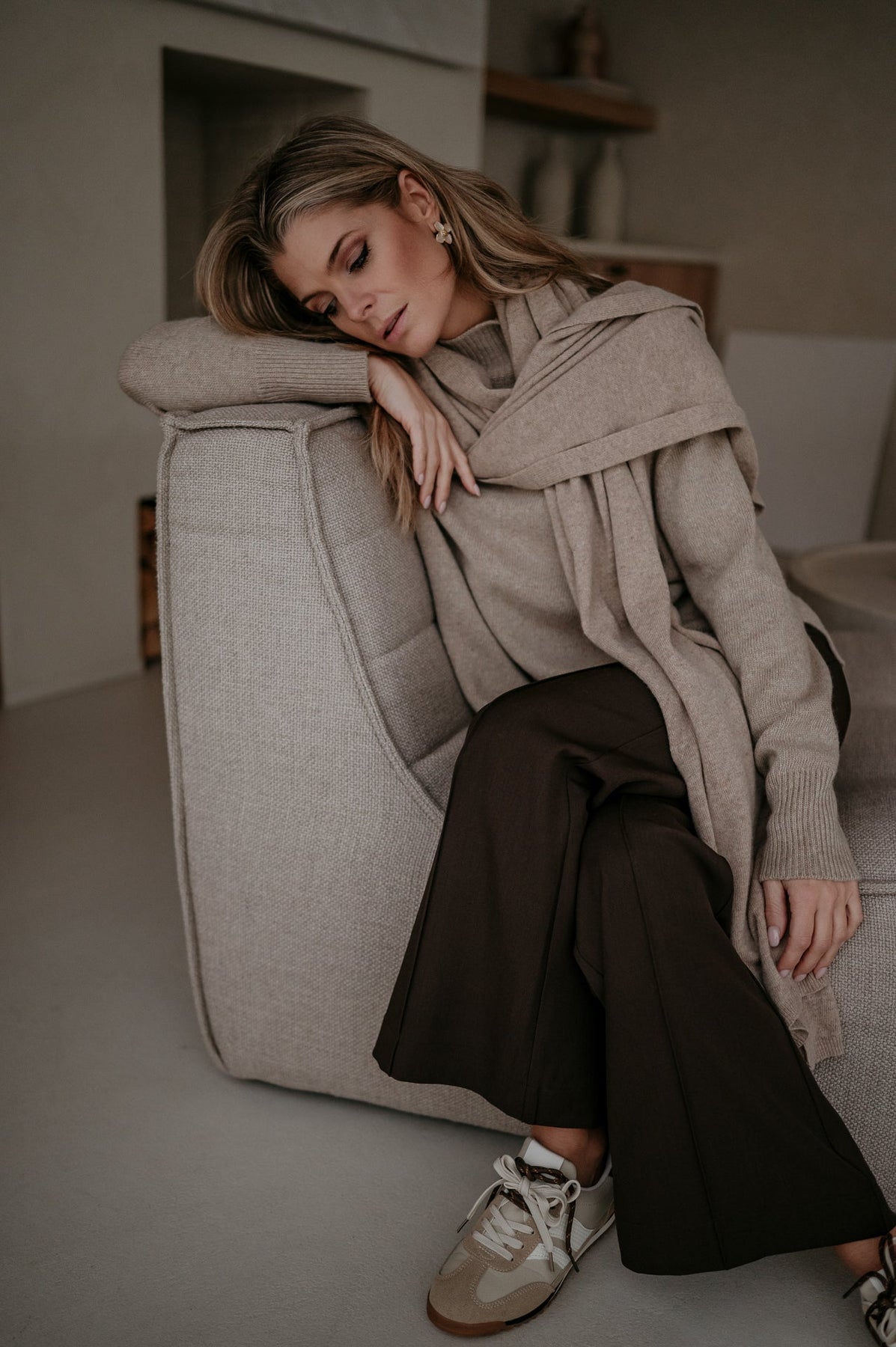 Draag hem over een trui of over een jas voor een extra laagje warmte en klasse tijdens de koelere dagen.
