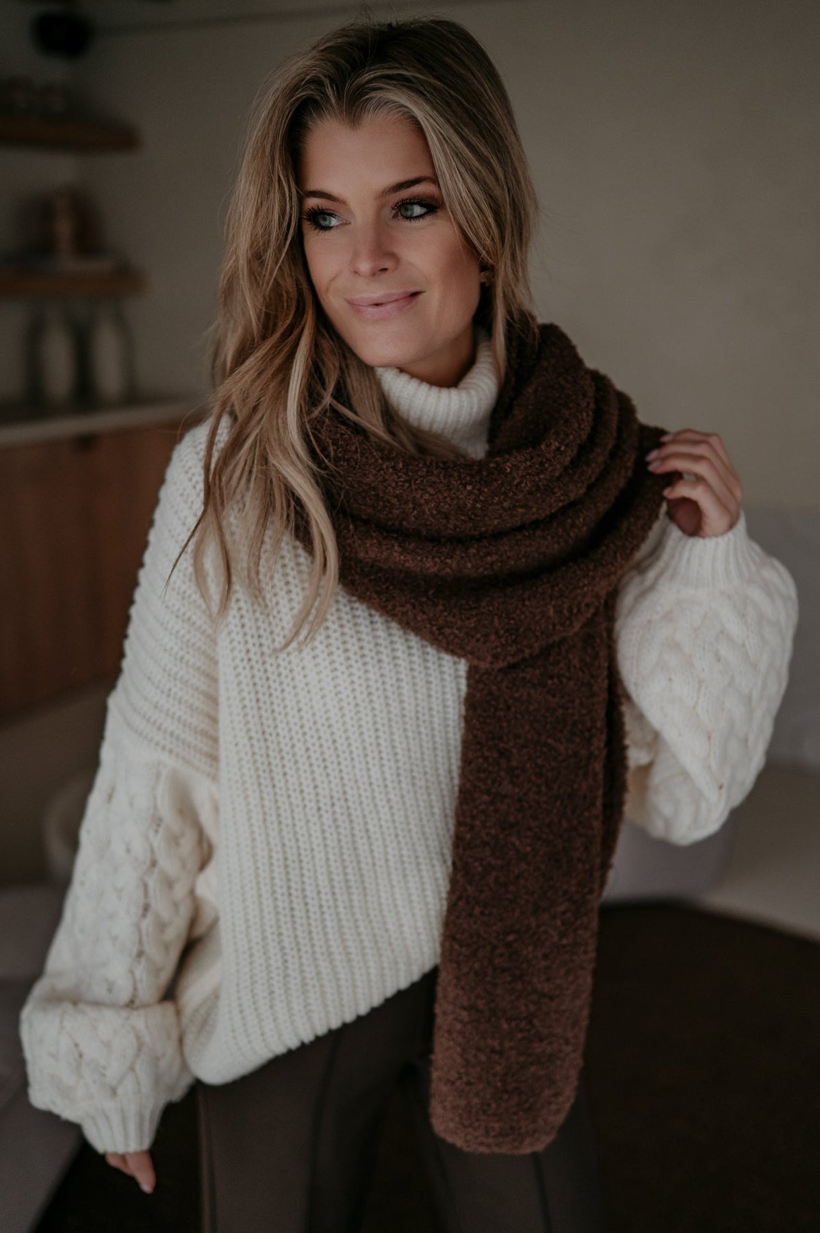 Deze mega zachte bruine sjaal is de perfecte toevoeging aan je outfit.