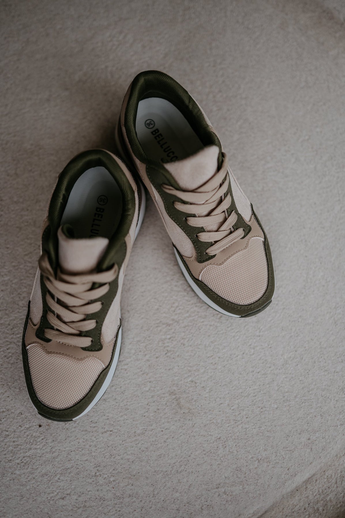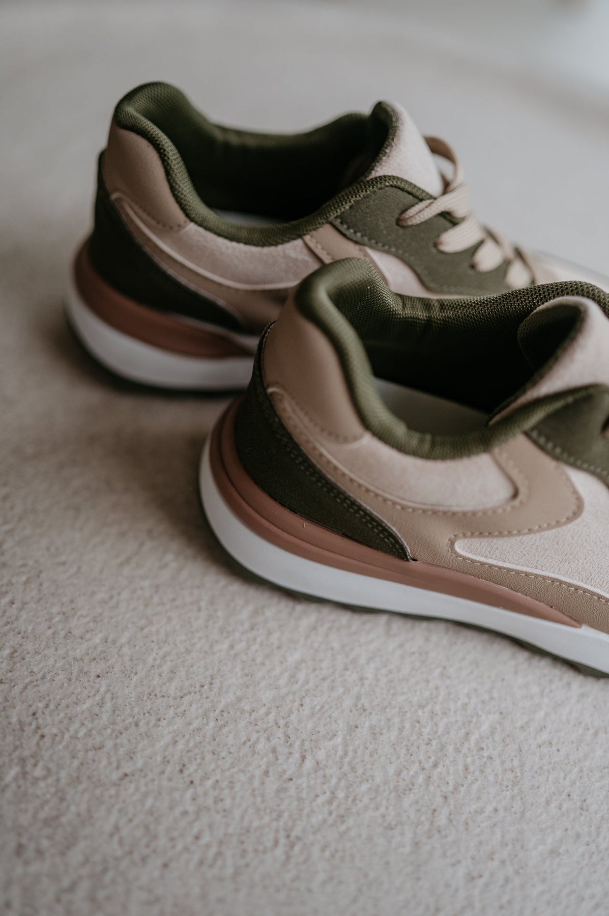 Deze beige sneakers met khaki details zijn de perfecte combinatie van comfort en stijl.