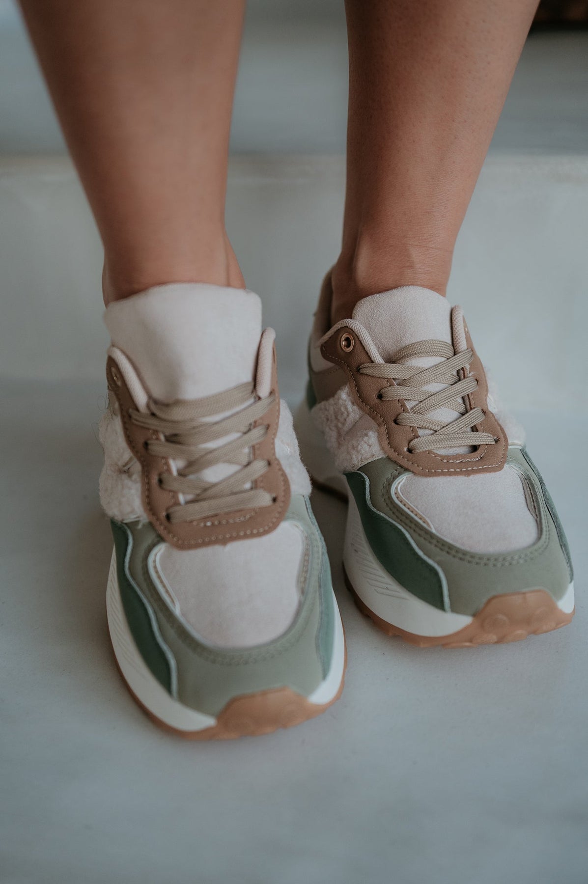 Deze toffe sneakers met een dikkere zool en lichtgroene details zijn helemaal on trend.