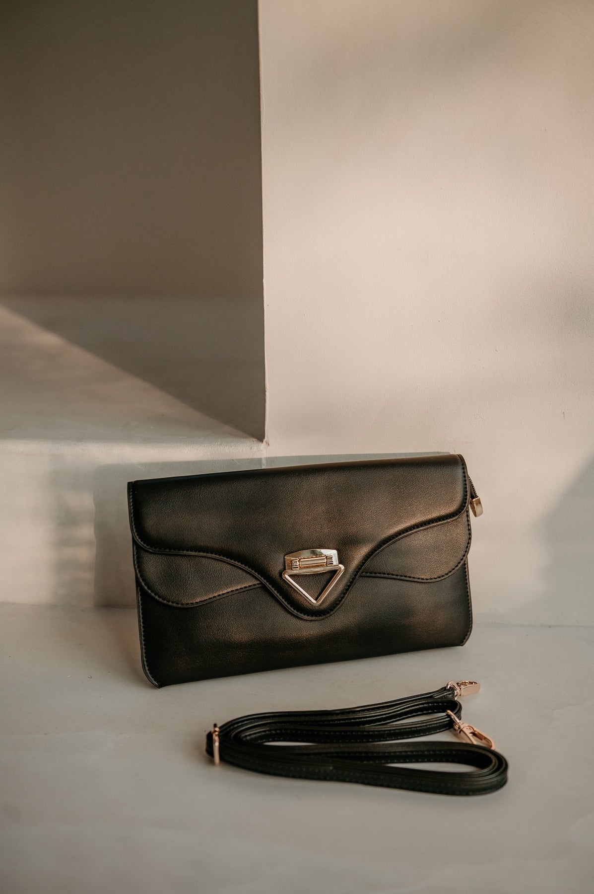 Deze zwarte clutch is stijlvol en perfect voor de feestdagen.