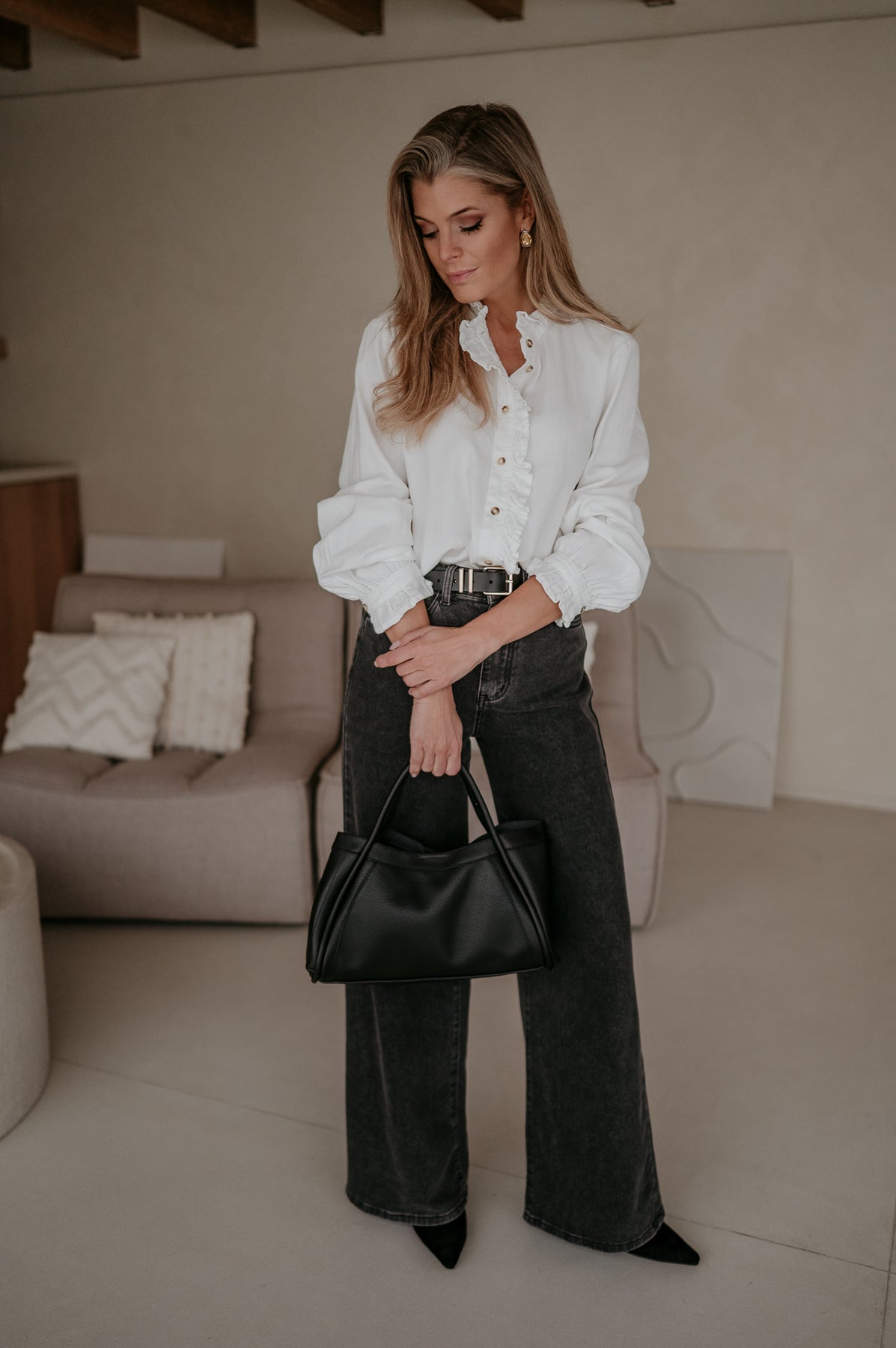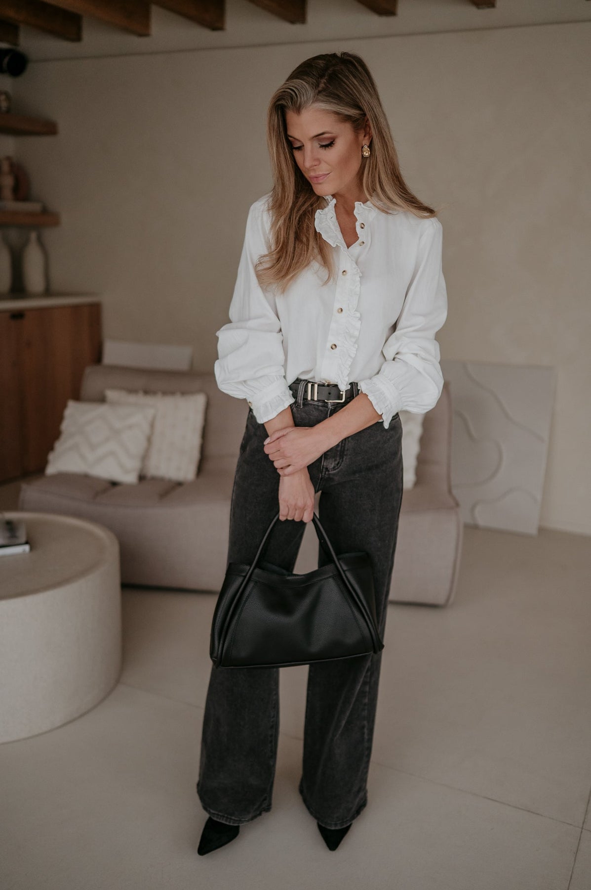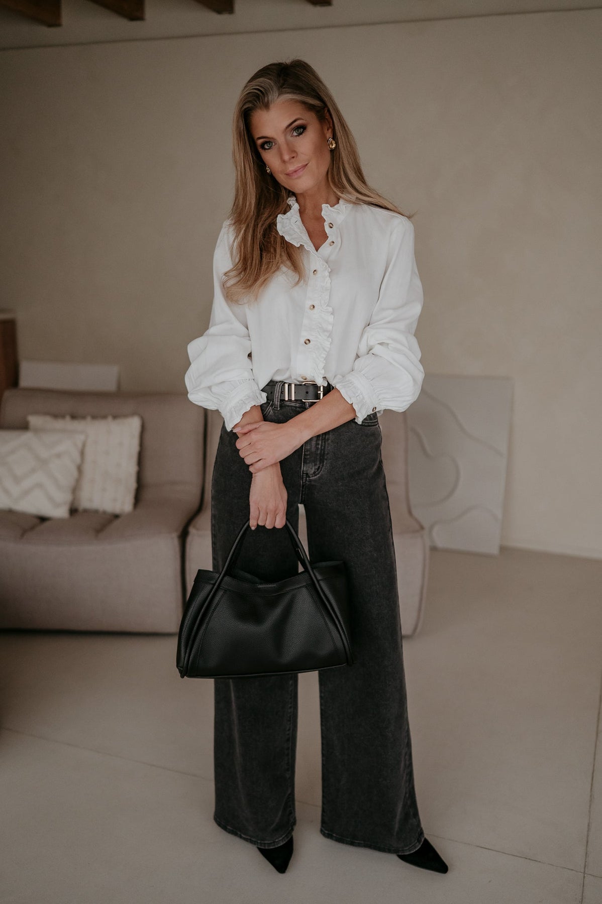 Dit mooie witte bloesje is een echte klassieker die niet mag ontbreken in je garderobe.