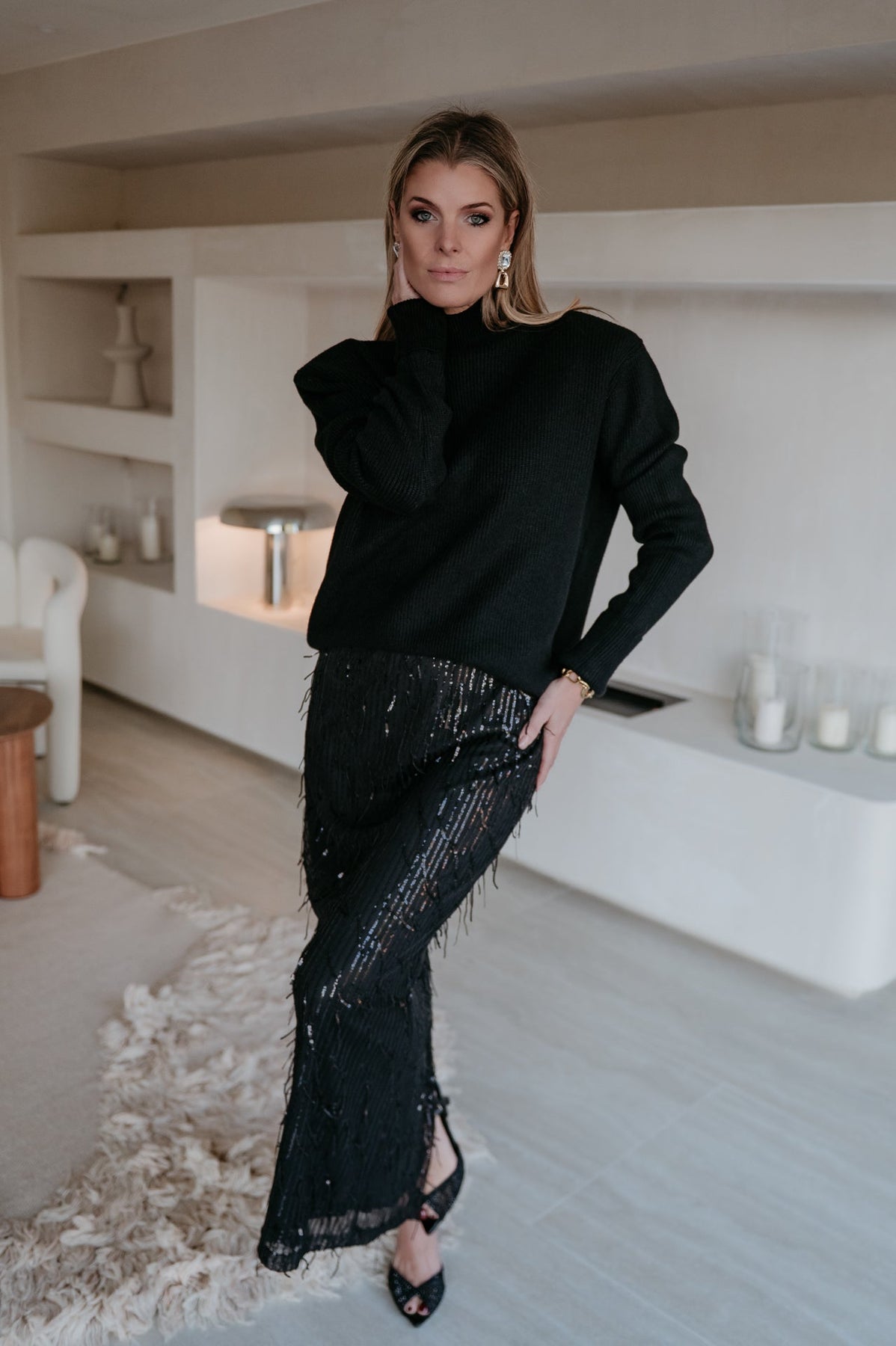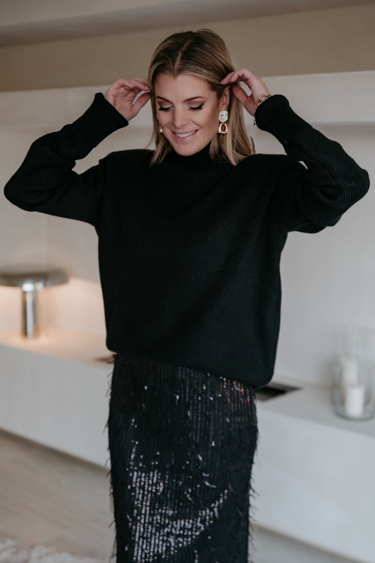 De subtiele schoudervulling geeft de trui een extra elegante en stijlvolle uitstraling.
