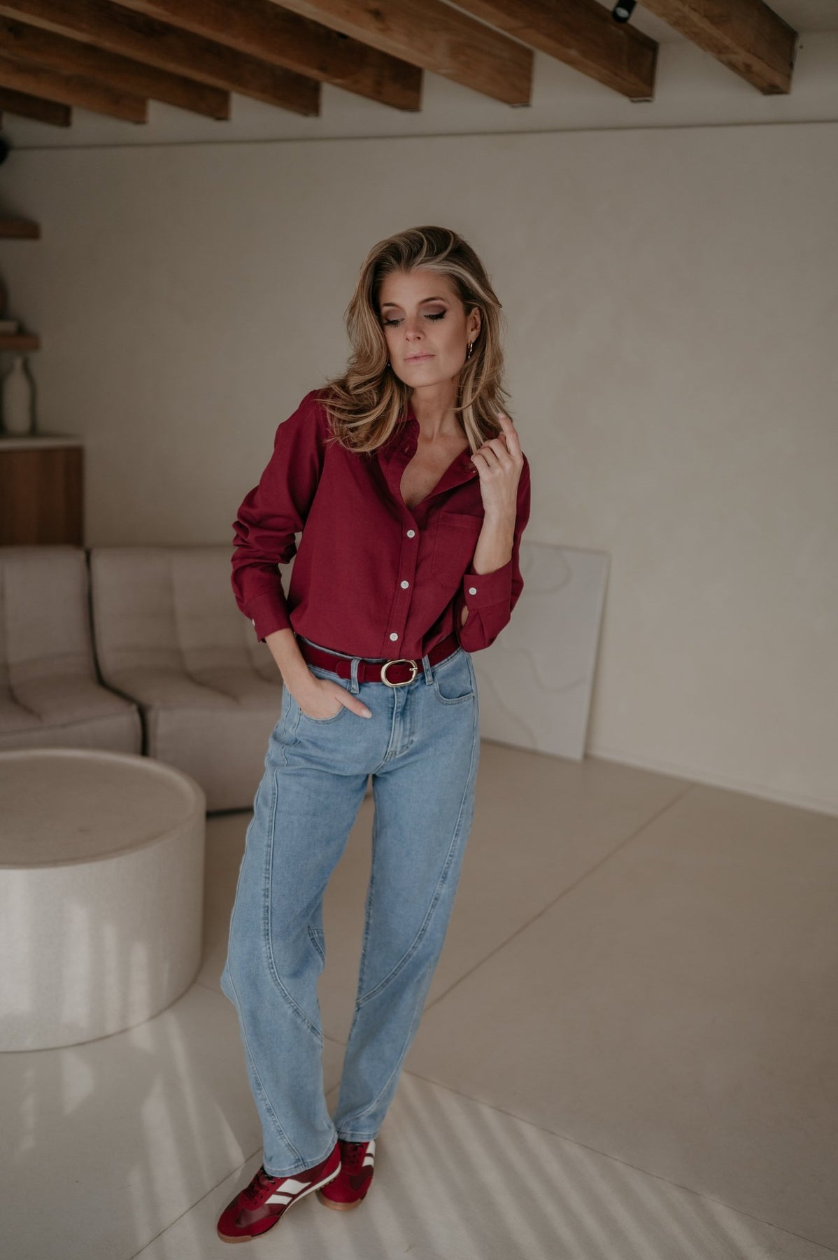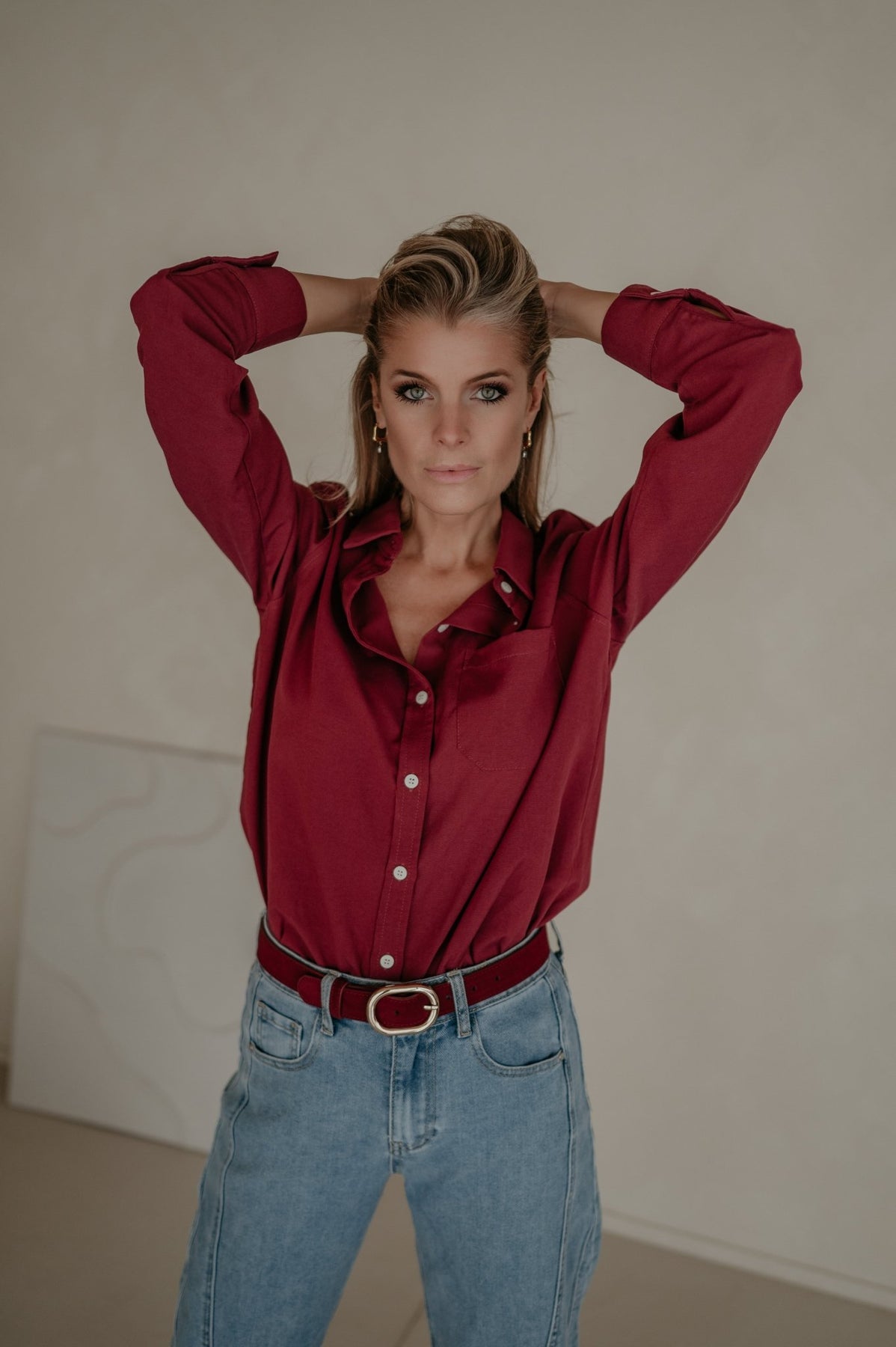 Een stijlvol burgundy hemd dat warmte en diepte toevoegt aan je outfit.