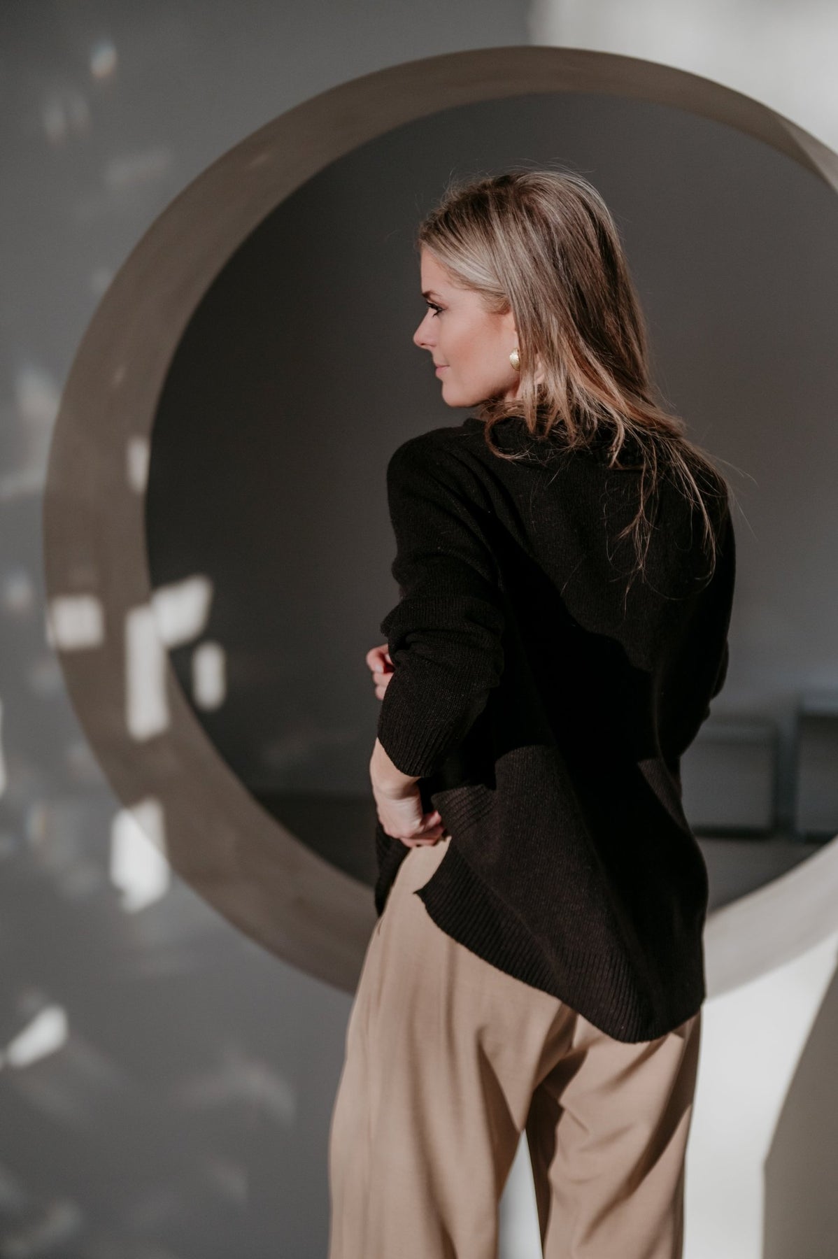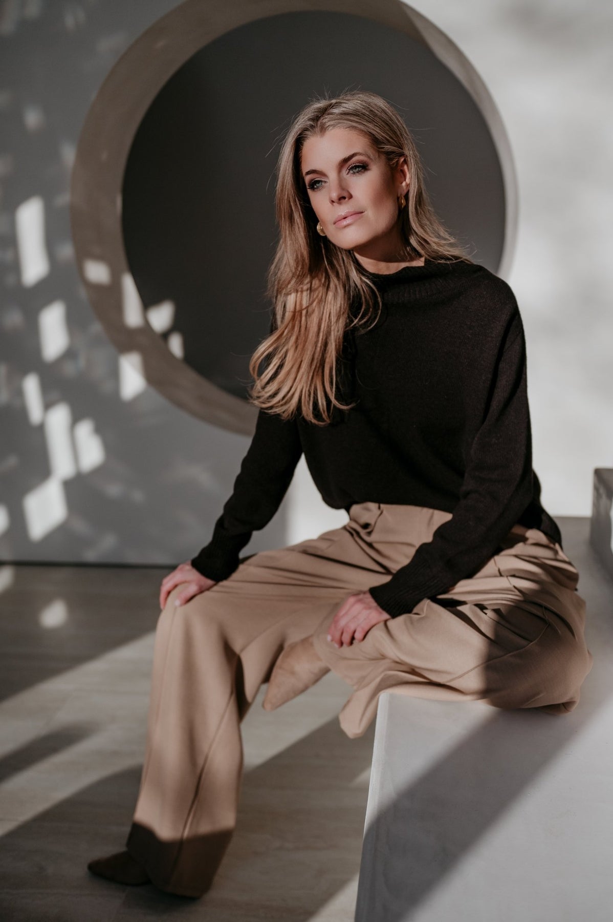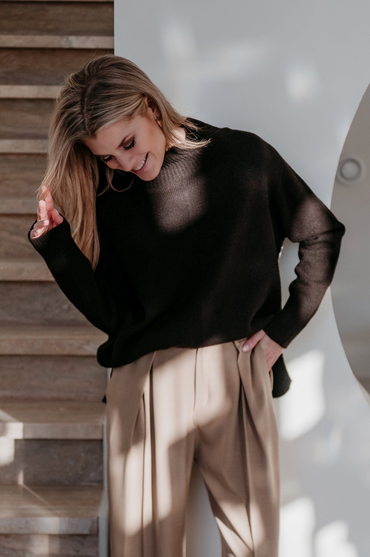 Heel mooie trui met een elegante hals en een subtiel langer model achteraan dan vooraan.