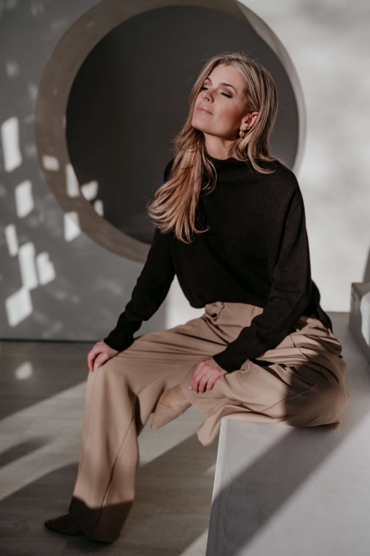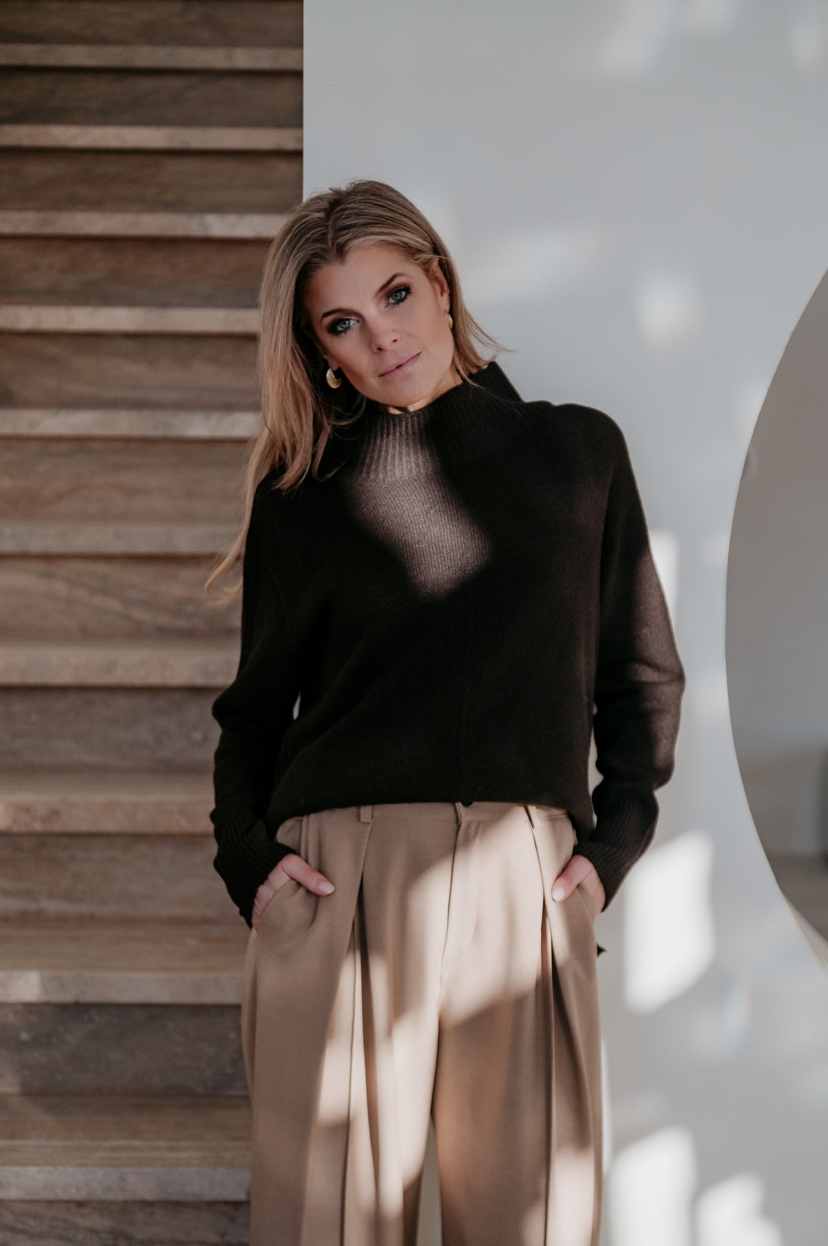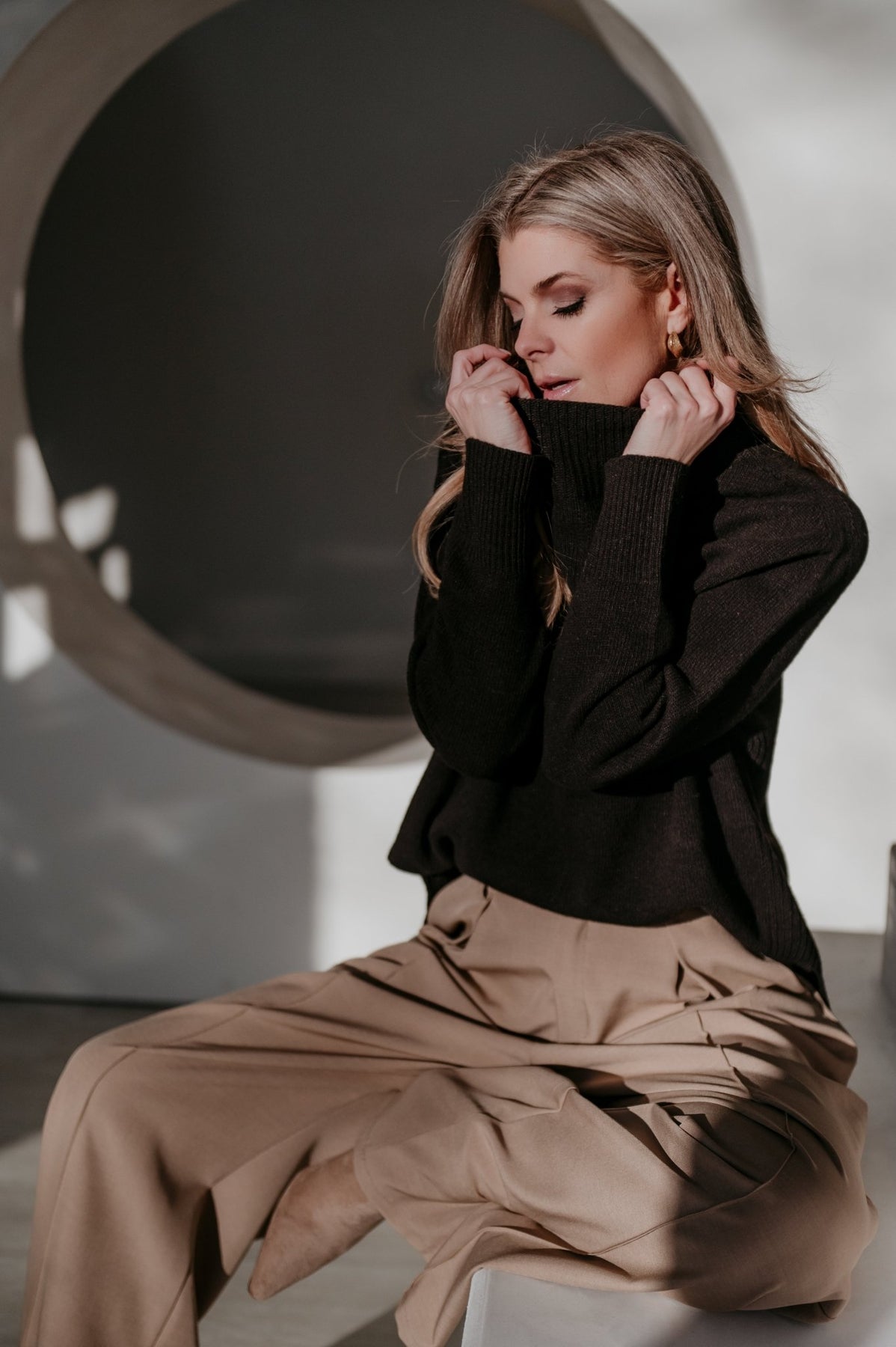 Heel mooie trui met een elegante hals en een subtiel langer model achteraan dan vooraan.