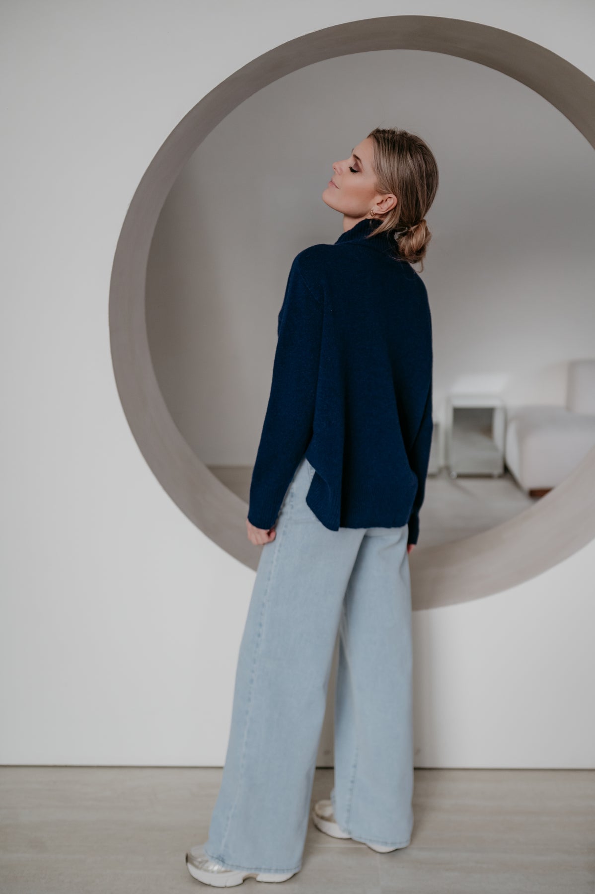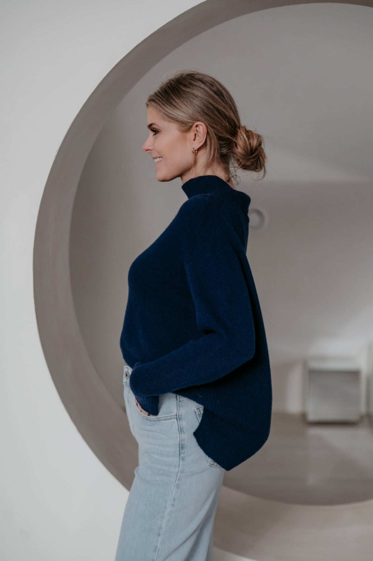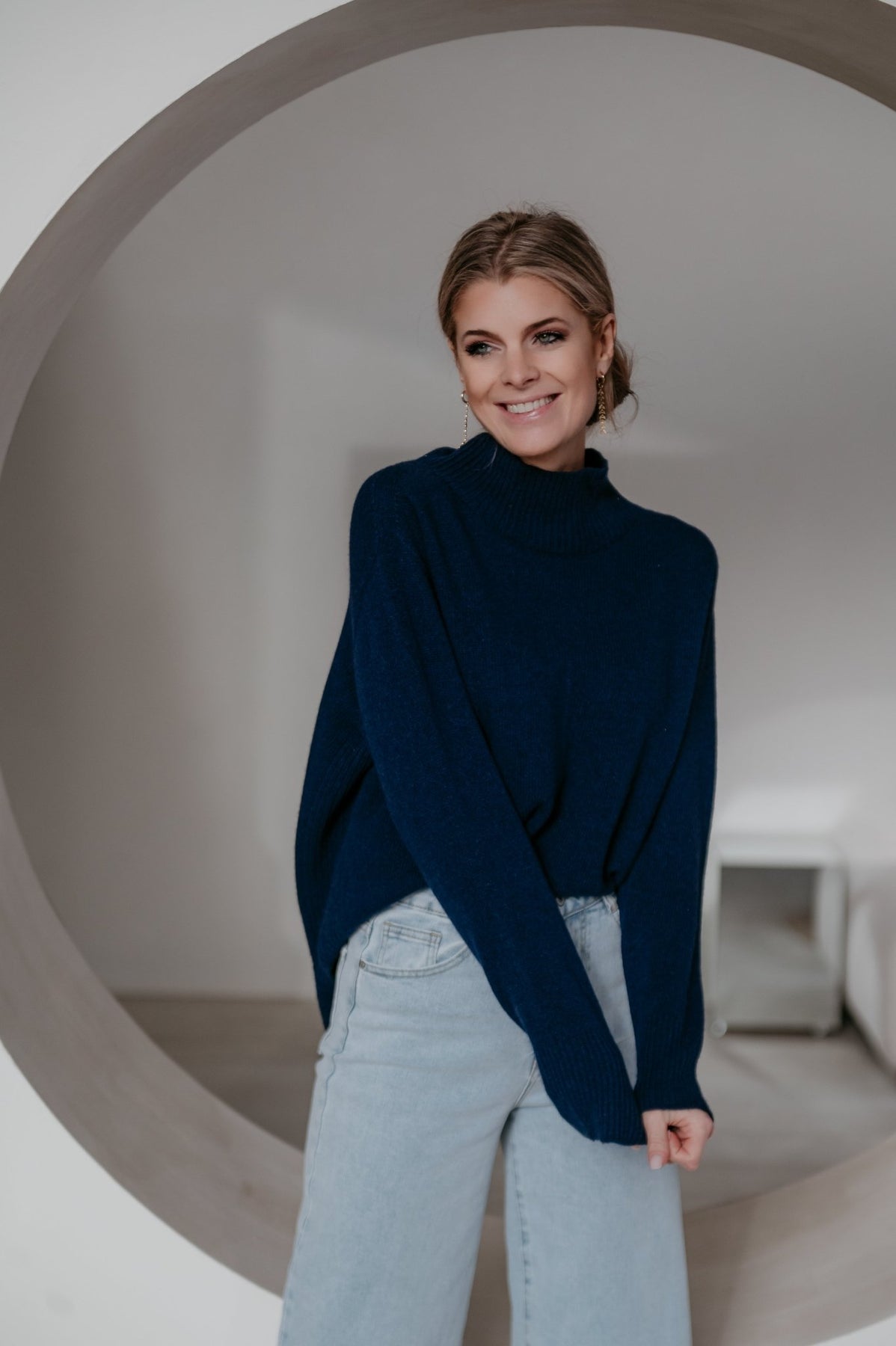 Heel mooie trui met een elegante hals en een subtiel langer model achteraan dan vooraan.