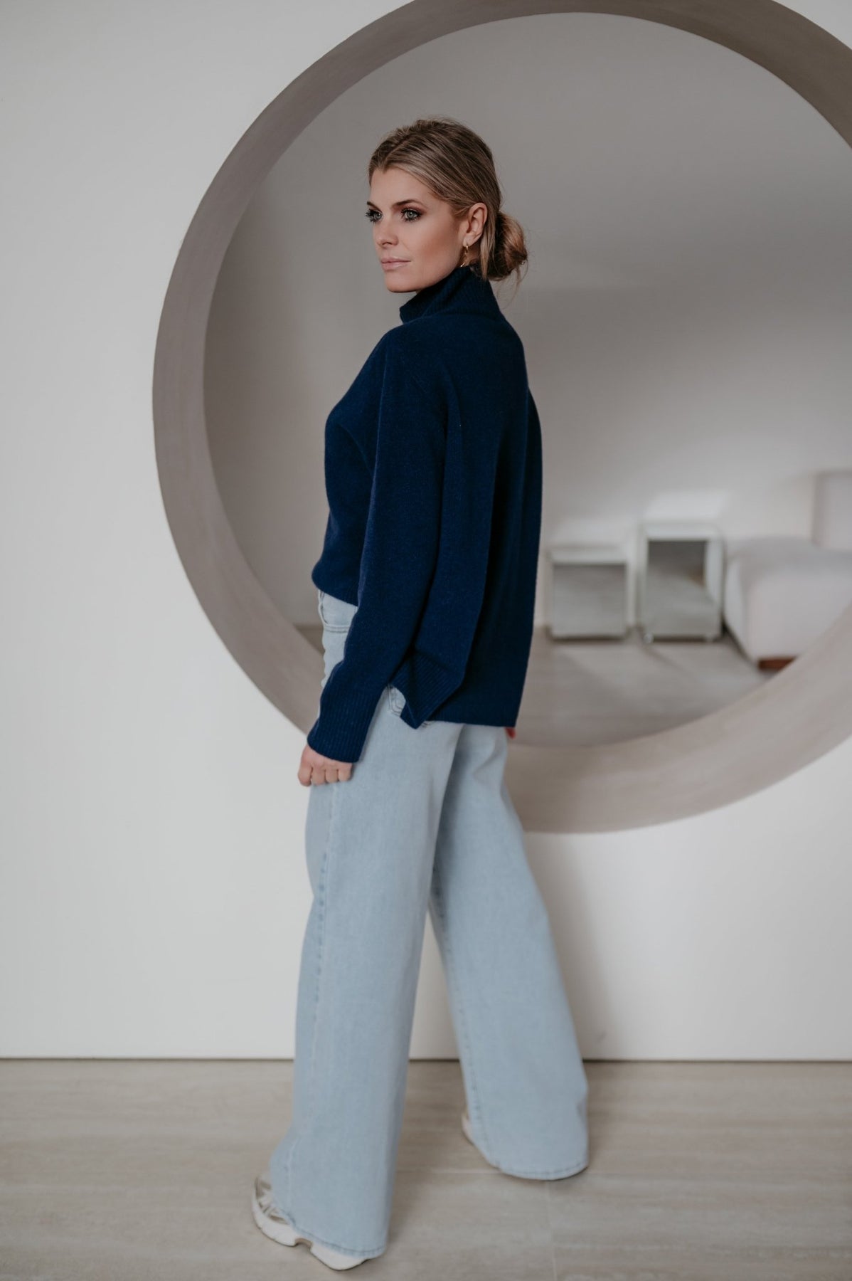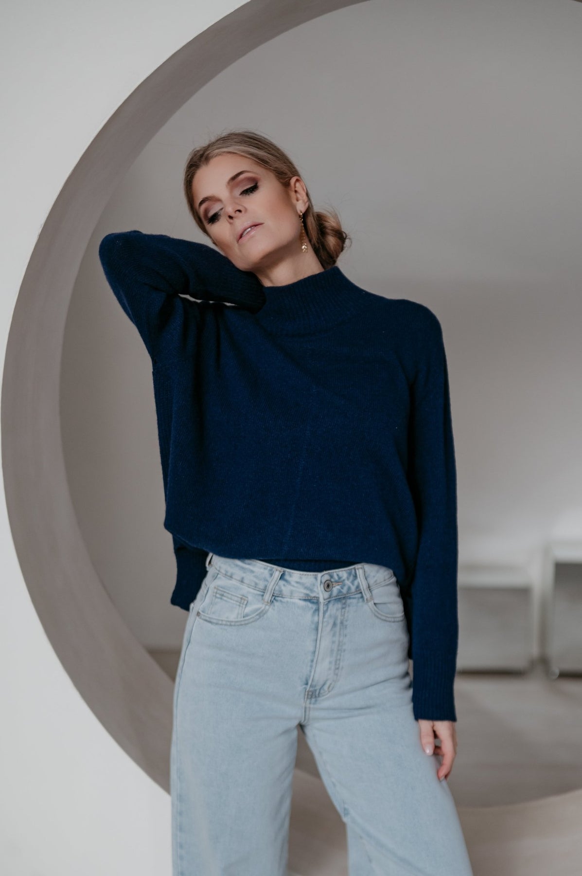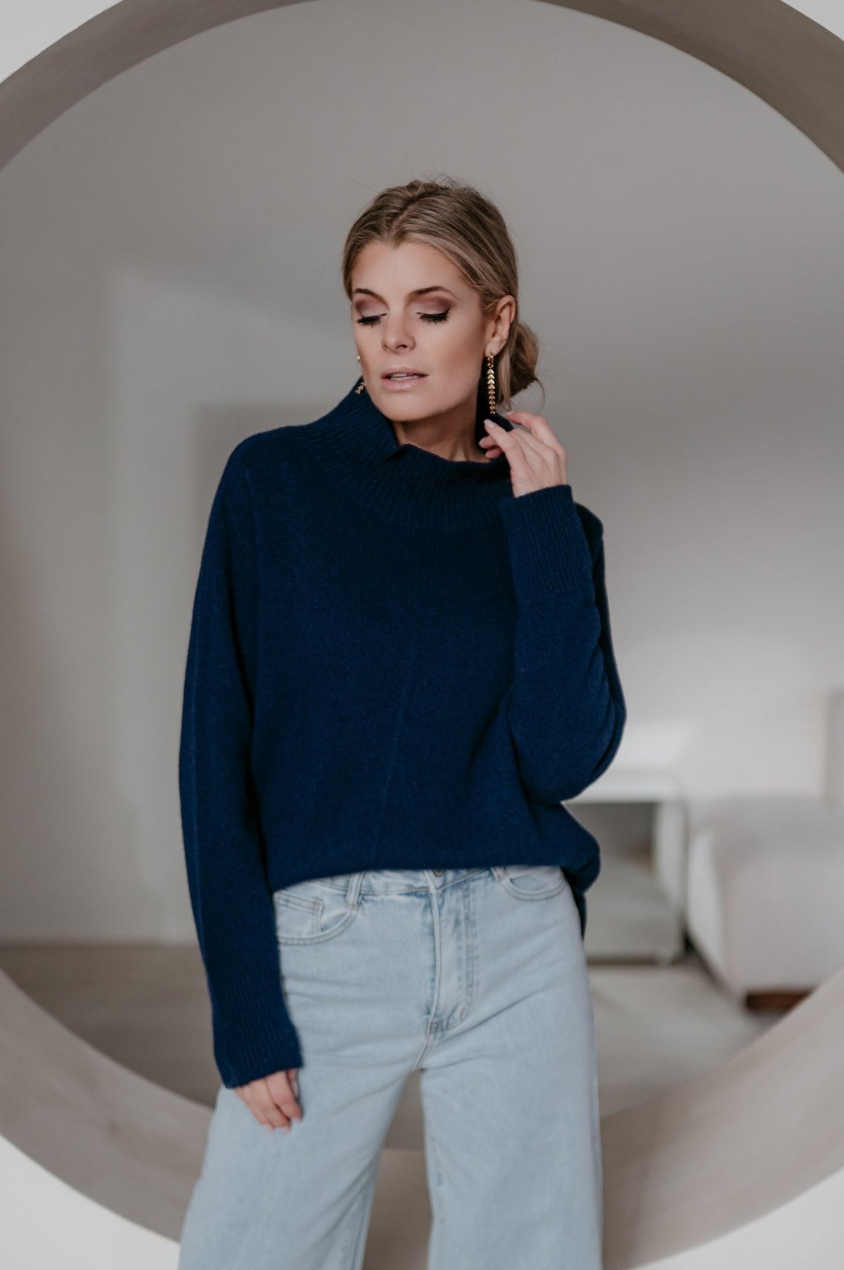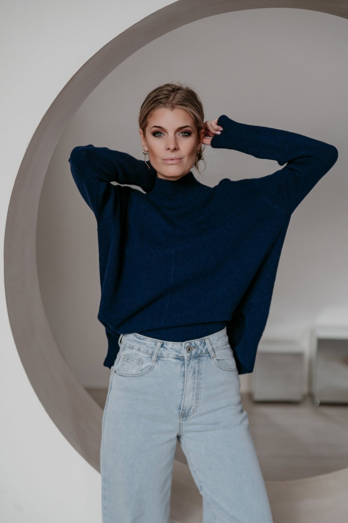 Heel mooie trui met een elegante hals en een subtiel langer model achteraan dan vooraan.