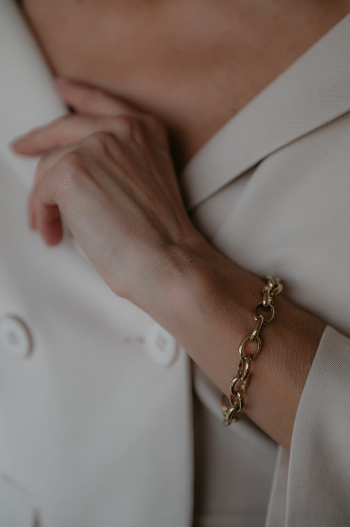 Een toffe schakelarmband die elke look meteen een stoer en stijlvol accent geeft.