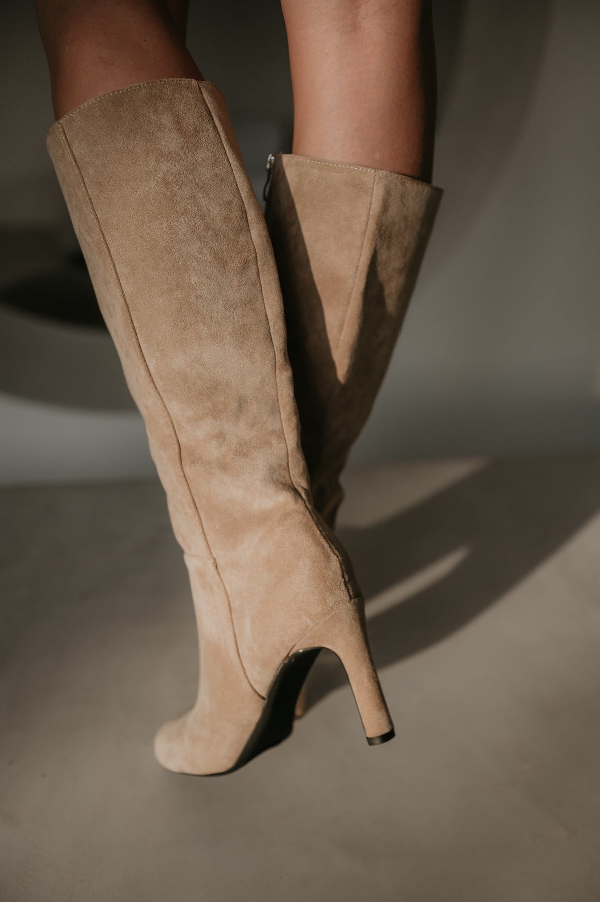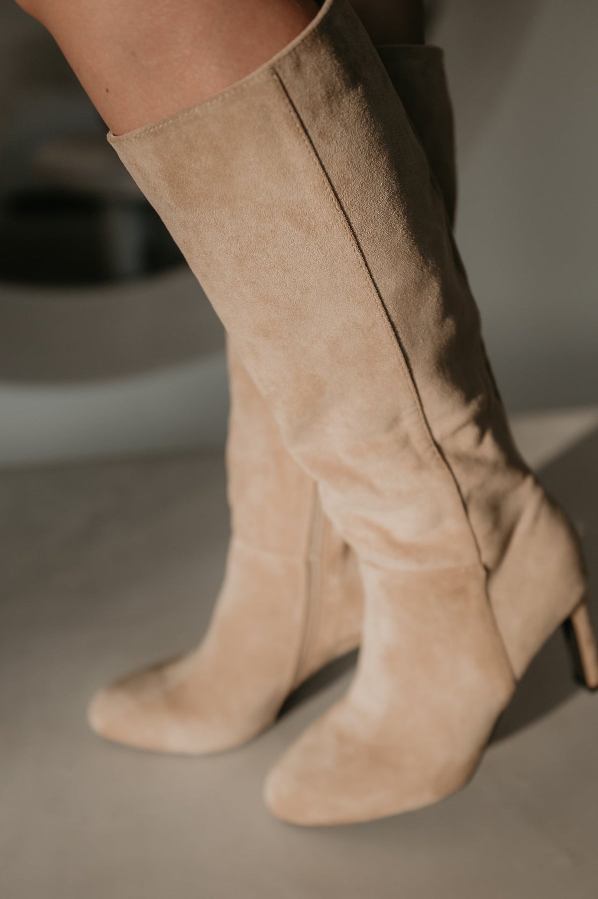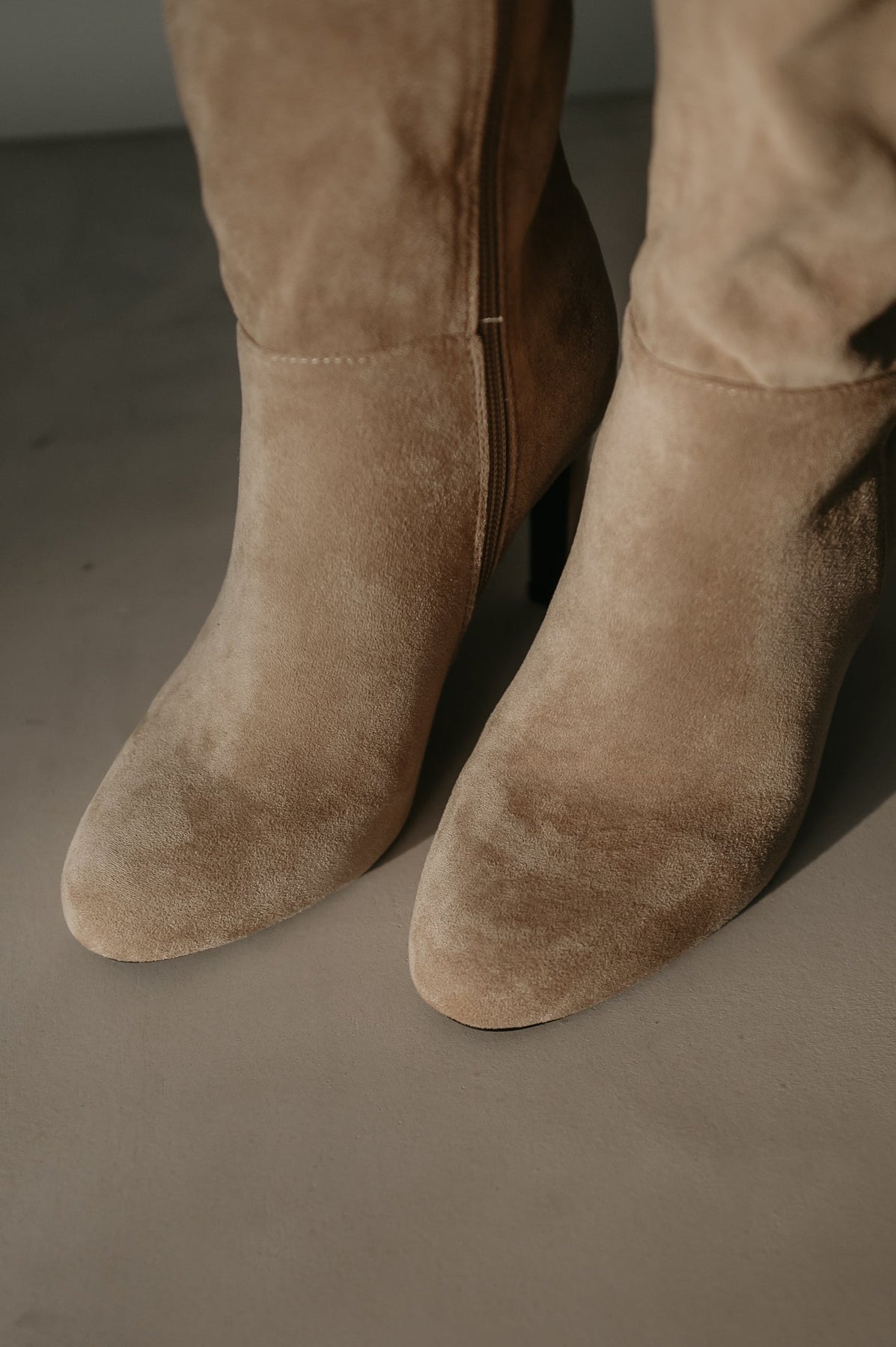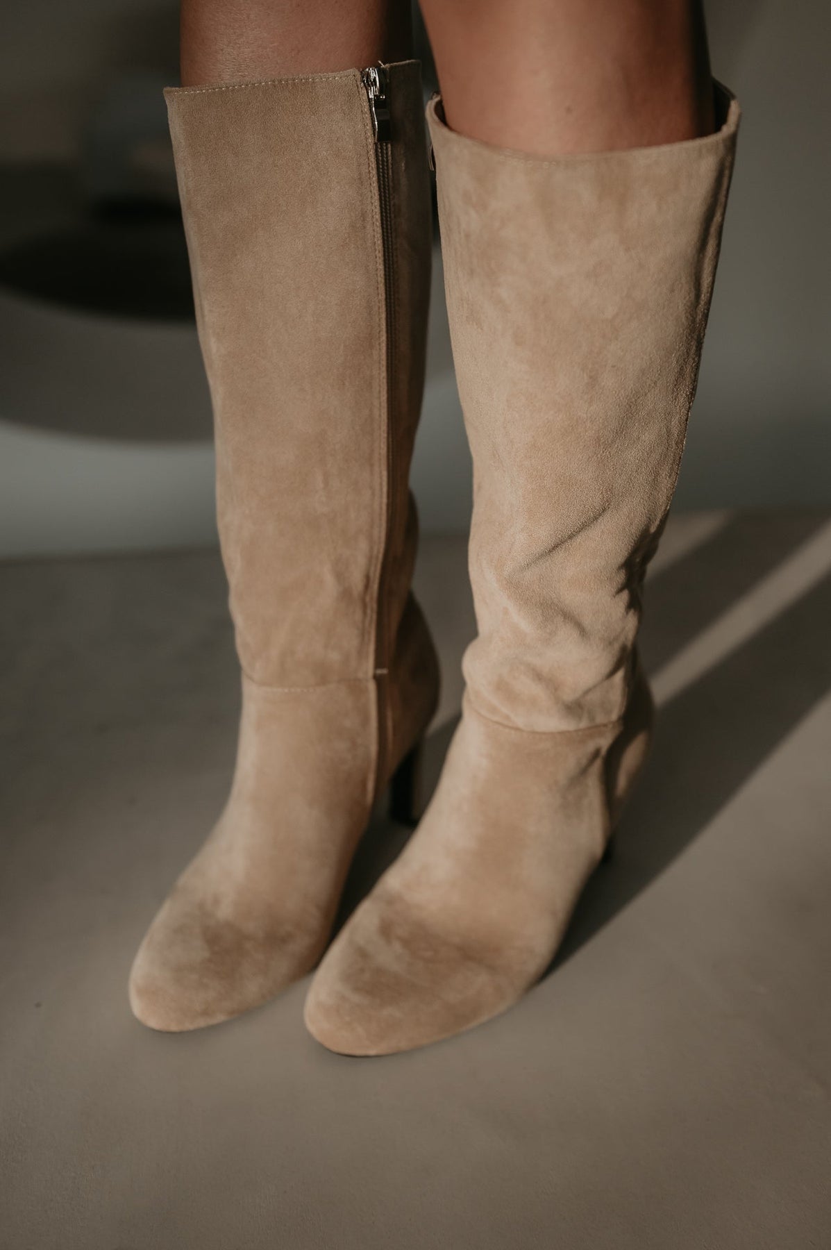 Heel mooie nep suede boots met een elegante hak en een ronde neus.