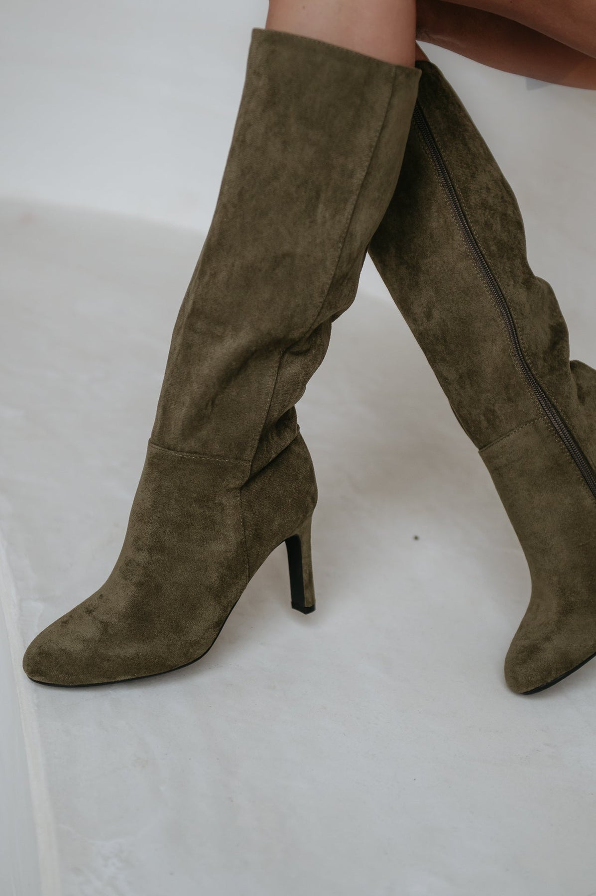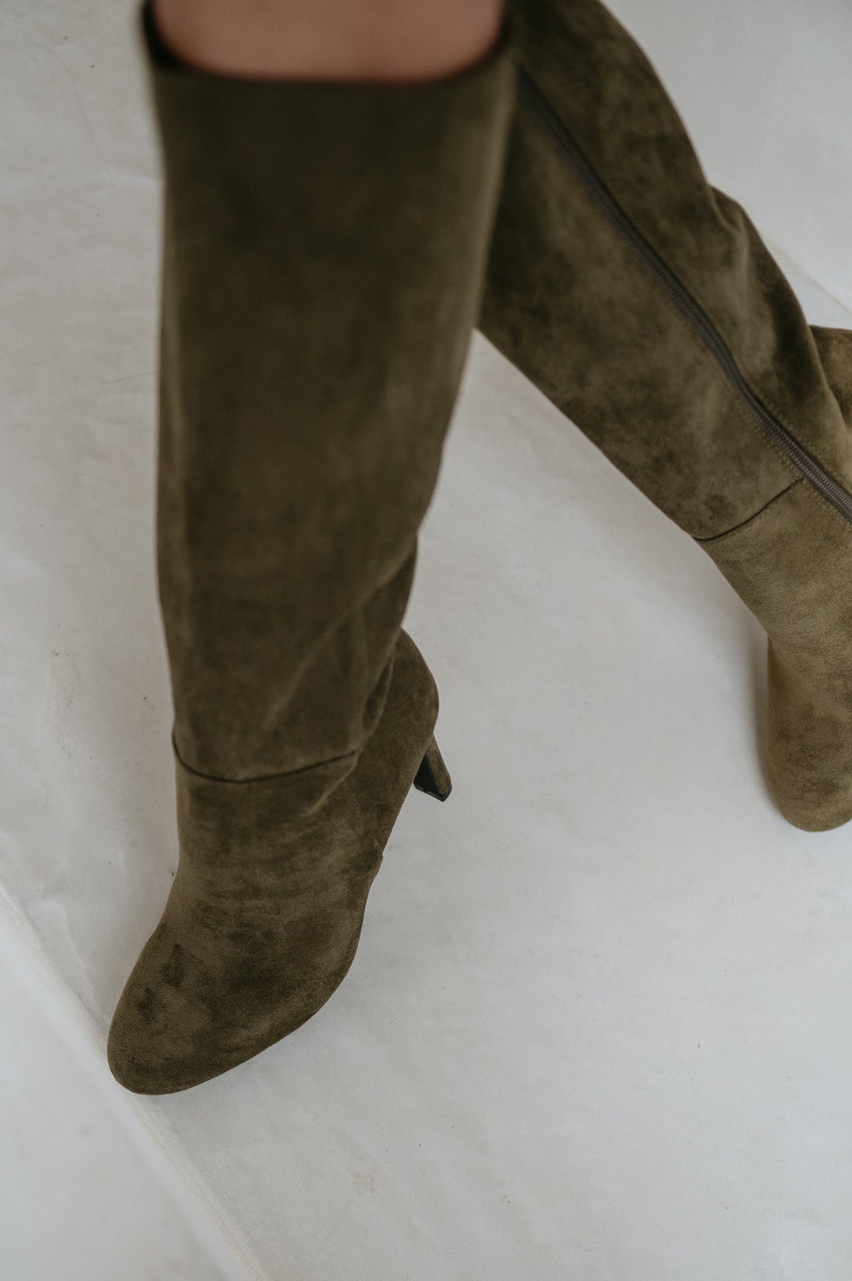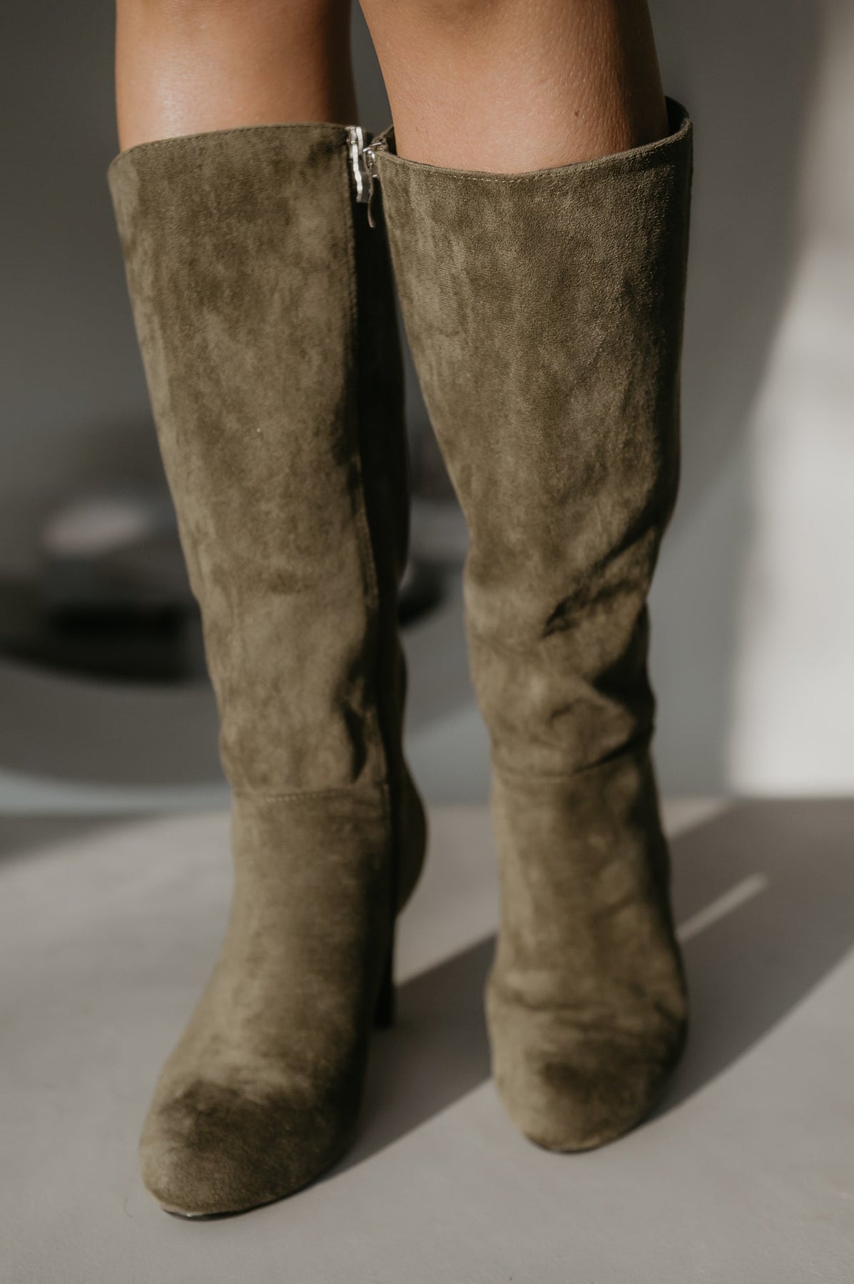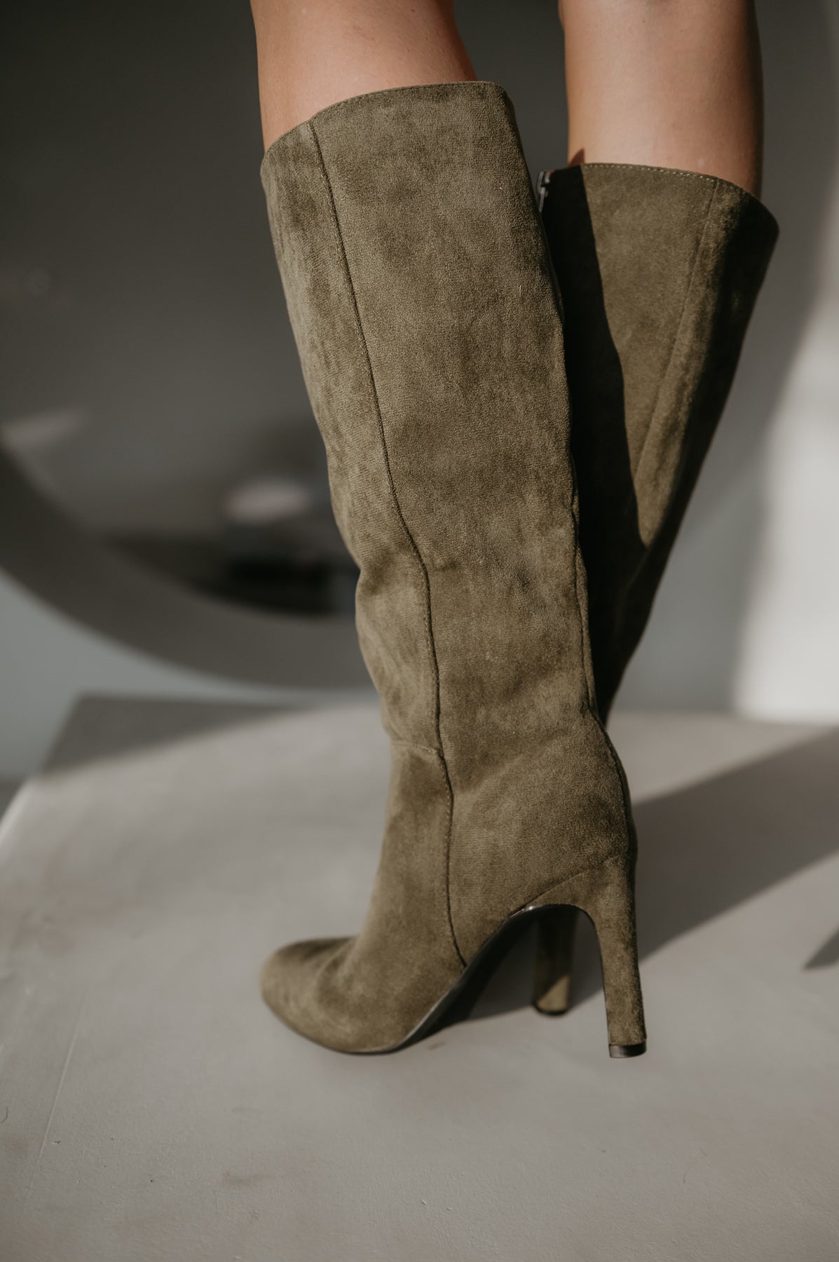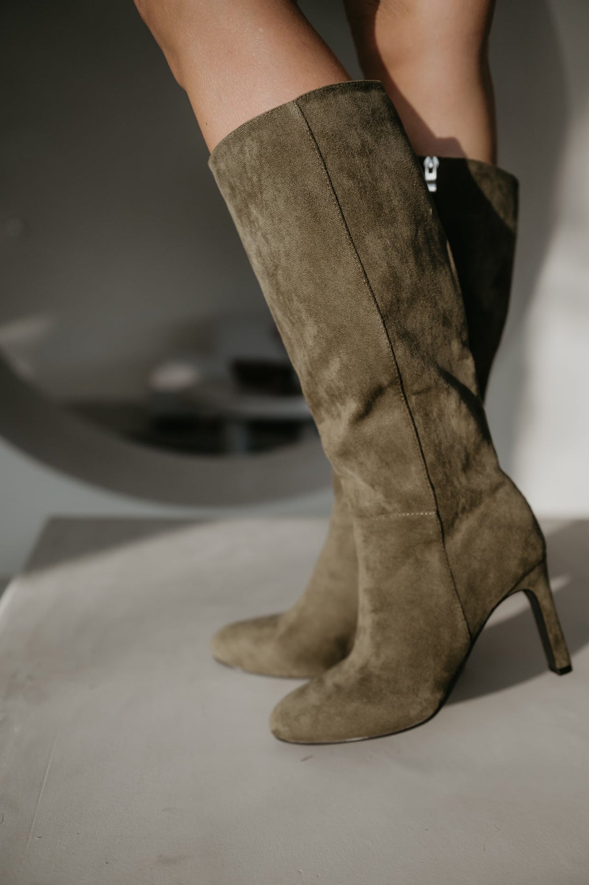 Heel mooie nep suede boots met een elegante hak en een ronde neus.