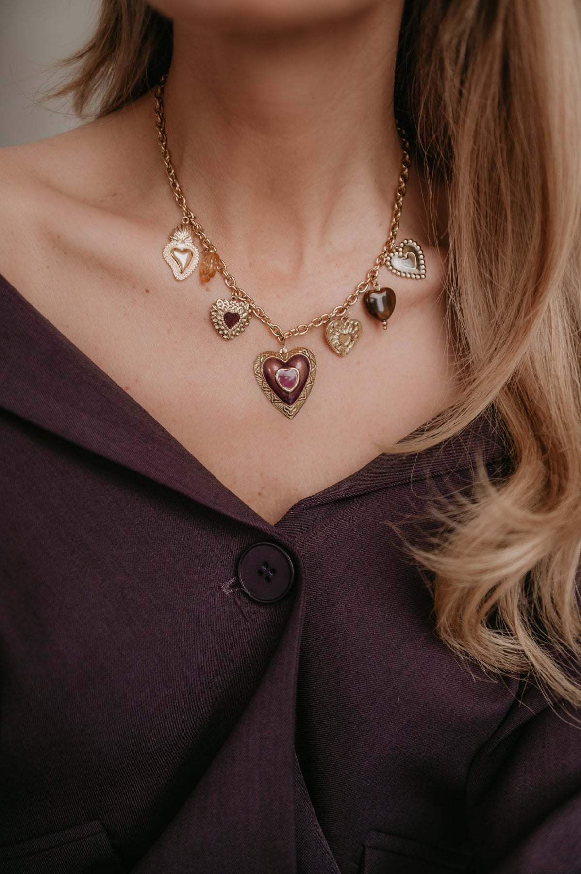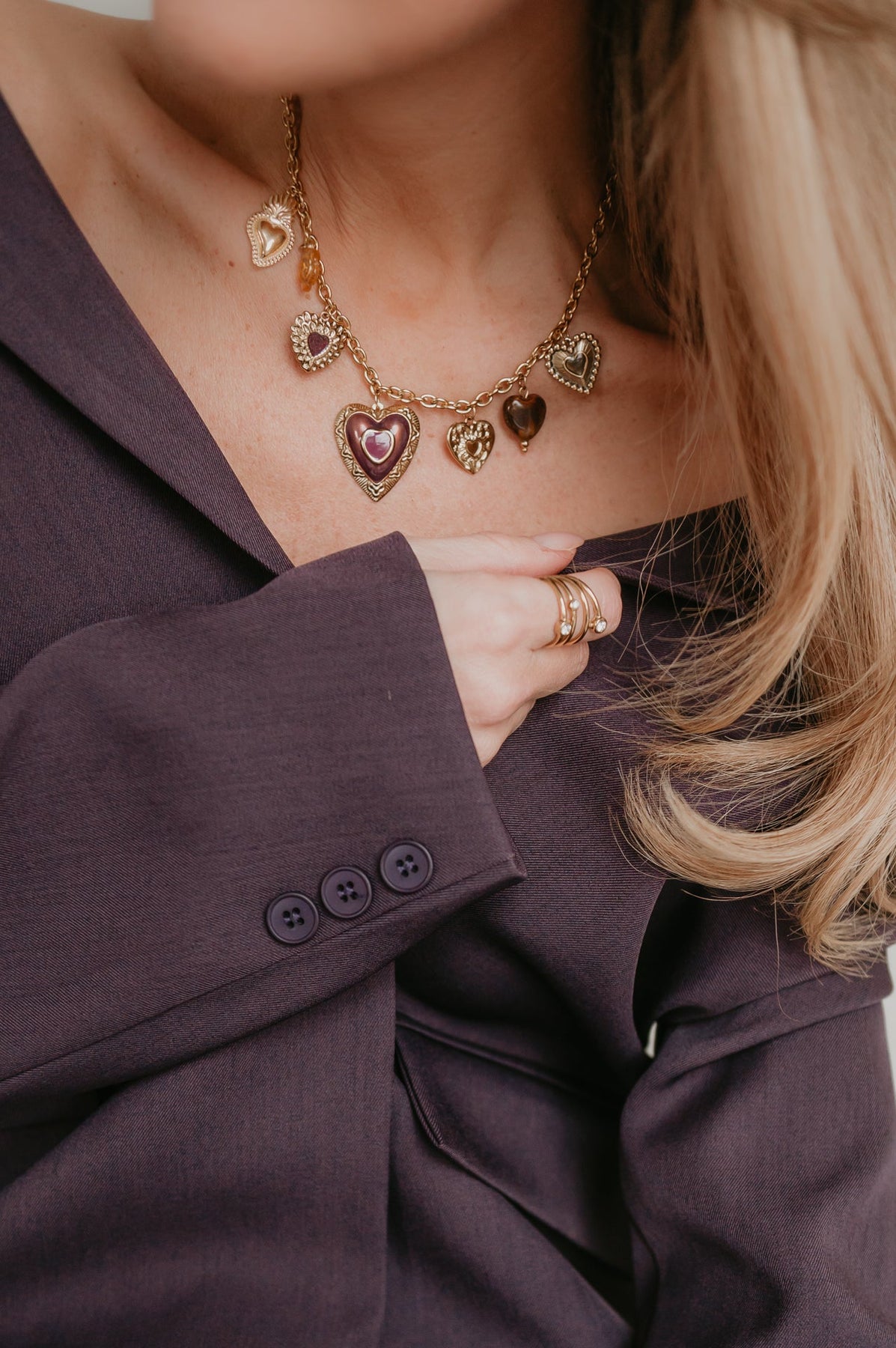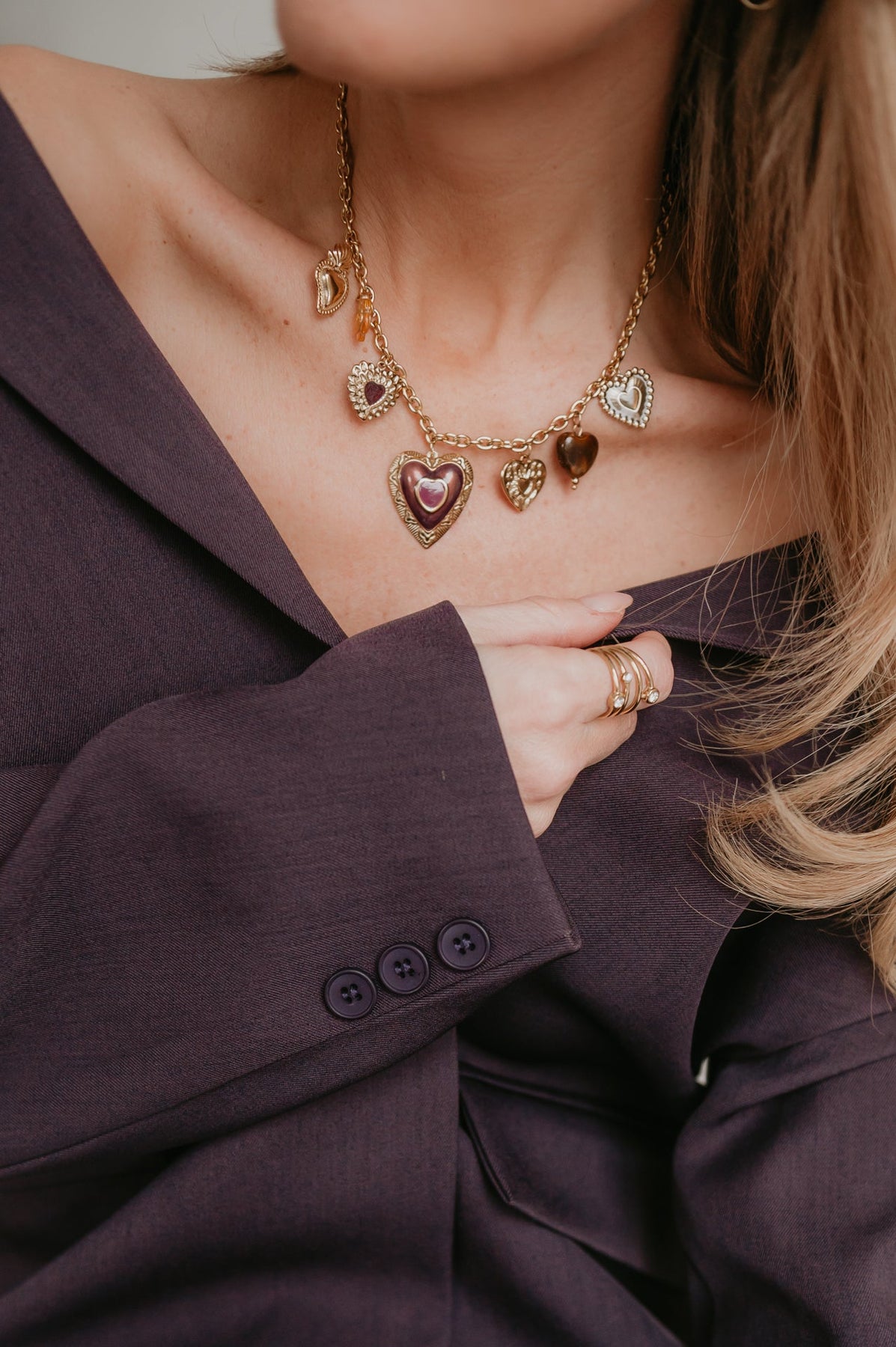 Een toffe bedelketting met auberginekleurige details die meteen een uniek accent aan je outfit geeft.